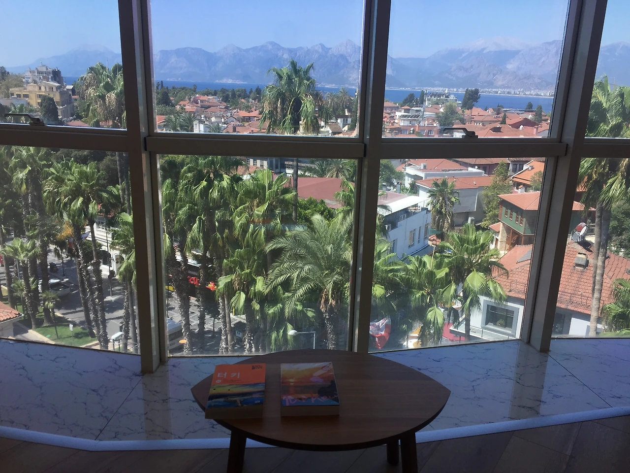 아무튼, 이번 휴가 때 가는 곳이 예전에 제가 잠시 여행으로 머물렀던 곳이 아니라 실제 오랜 기간 거주했던 곳이다 보니 그 나라의, 그리고 그 도시의 향(香)과 색(色)과 맛(味)이 익숙하면서 그리운, 뭐 그런 감정이 벌써부터 느껴지네요. 그래서 꽉꽉 채운 10박(12일)의 휴가 기간 동안, 심플하게 이스탄불(숙소는 유럽 사이드 부촌(?)인, 조용한 베식타쉬 지구의 에어비앤비)과 안탈리아(남부 지중해 연안의 휴양도시, 숙소는 구시가지 바로 앞 고급(?) 아파트형 리조트) 딱 두 개 도시만 갑니다. 그중 안탈리아는 제가 주재 기간 막판에 연속으로 세 번이나 갔었던 곳인데, 심지어 제가 묵을 숙소에서도 창문을 열면 아래와 같은 풍경이 보입니다. 안탈리아는 굉장히 이국적인... 에메랄드빛 바다와 해변, 그리고 장엄한 토로스 산맥이 한눈에 보이는 터키의 대표 휴양지인데요. 저에게 아직 남아 있는 이 도시에 대한 정(情)을 이번 휴가 때 아낌없이 다 주고 와야겠다는 생각이 들었습니다.