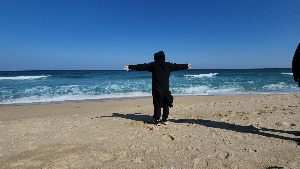 눈앞에 펼쳐진 새파란 바다를 보곤