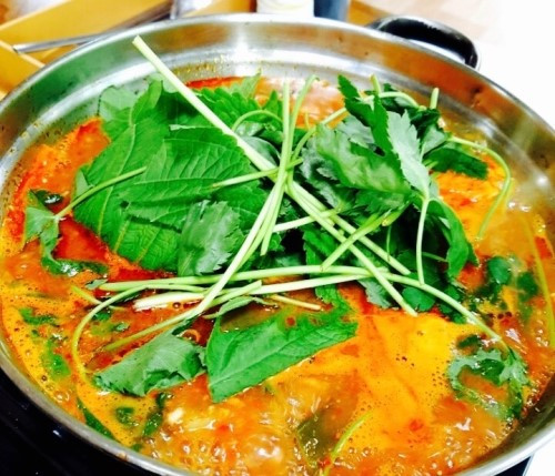 국물에 감자랑 양파랑 녹두를 갈아넣은 풍미가 났다.