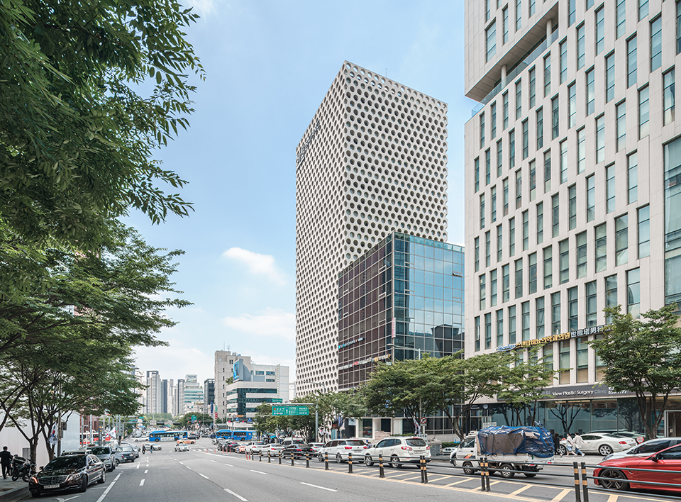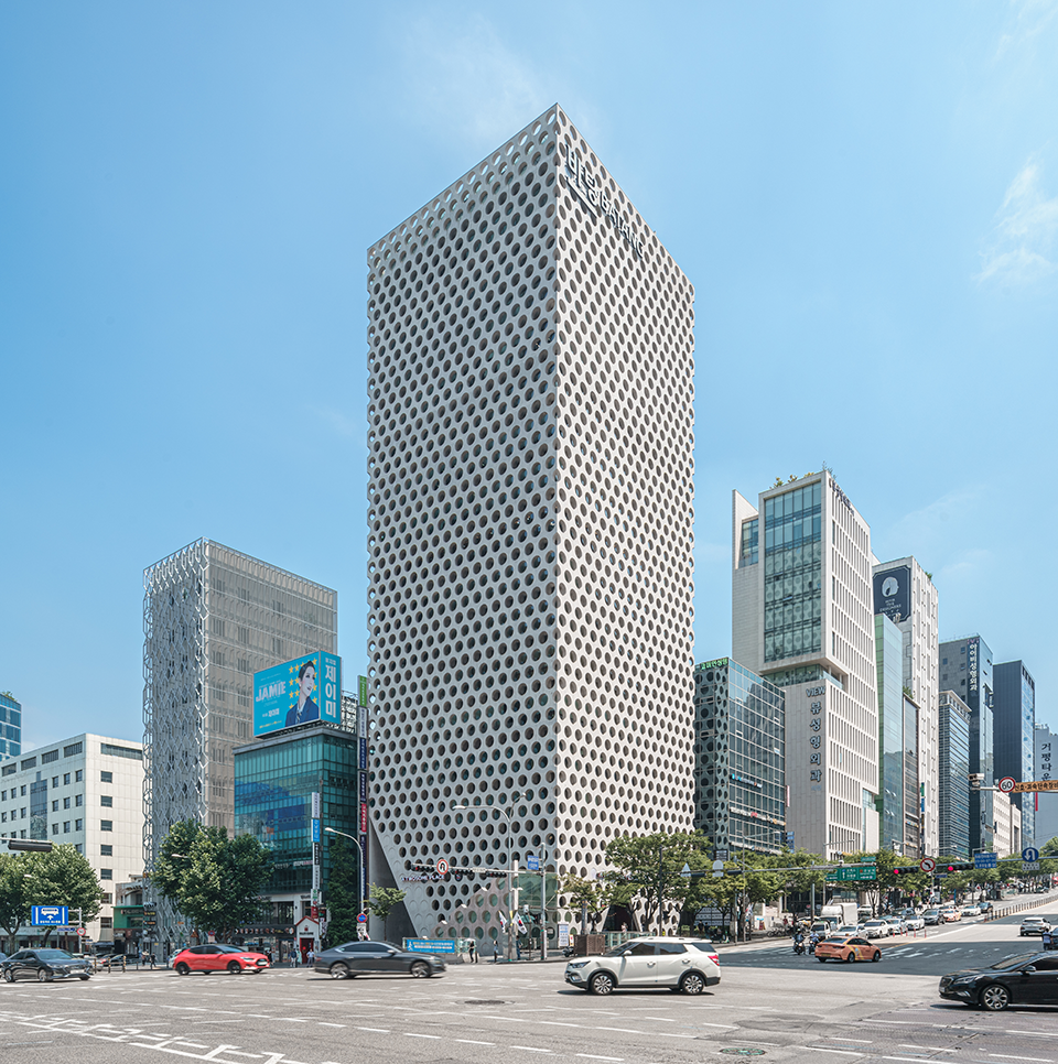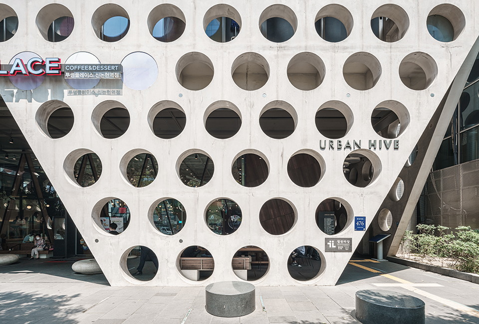 건축가 김인철이 설계한 어반파이브(Urban Hive)는 서울 강남에 위치한 상업용 오피스 빌딩입니다. 그는 '강남이라는 도시의 흥청대는 분위기'에서 이 건물 설계를 시작했다고 합니다. 도회의 욕망에 점령된 번잡과 혼란을 진정시키고, 차분하게 만들고 싶었다고 합니다.