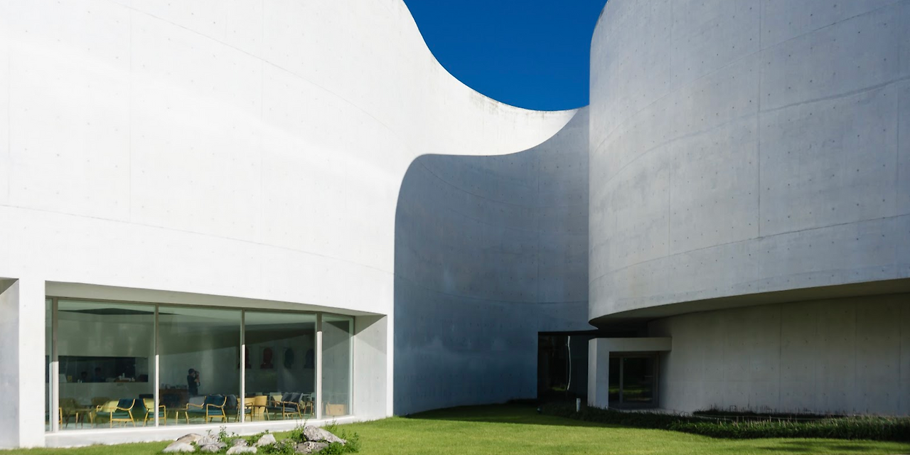 미메시스 아트 뮤지엄은 출판과 예술의 집이라는 콘셉트를 살려, 전시 공간 자체가 작품처럼 보이도록 하는 것이었습니다. 알바로 시자는 부드러운 곡선과 유려한 외관을 사용하여 건물을 유기적인 형태로 디자인했습니다. 흰색으로 마감된 외관은 빛을 부드럽게 반사하여 주변 자연과 잘 어우러지며, 내부는 자연광을 효과적으로 활용해 작품 감상에 최적화된 공간으로 구성되었습니다.