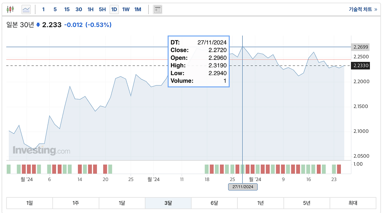 일본은행(BOJ)은 초저금리 정책을 오랜 기간 유지해 왔다. 국채 금리가 상승하면, 일본은행이 금리를 올릴 가능성이 커지고, 이는 엔캐리 트레이드에 악재다.