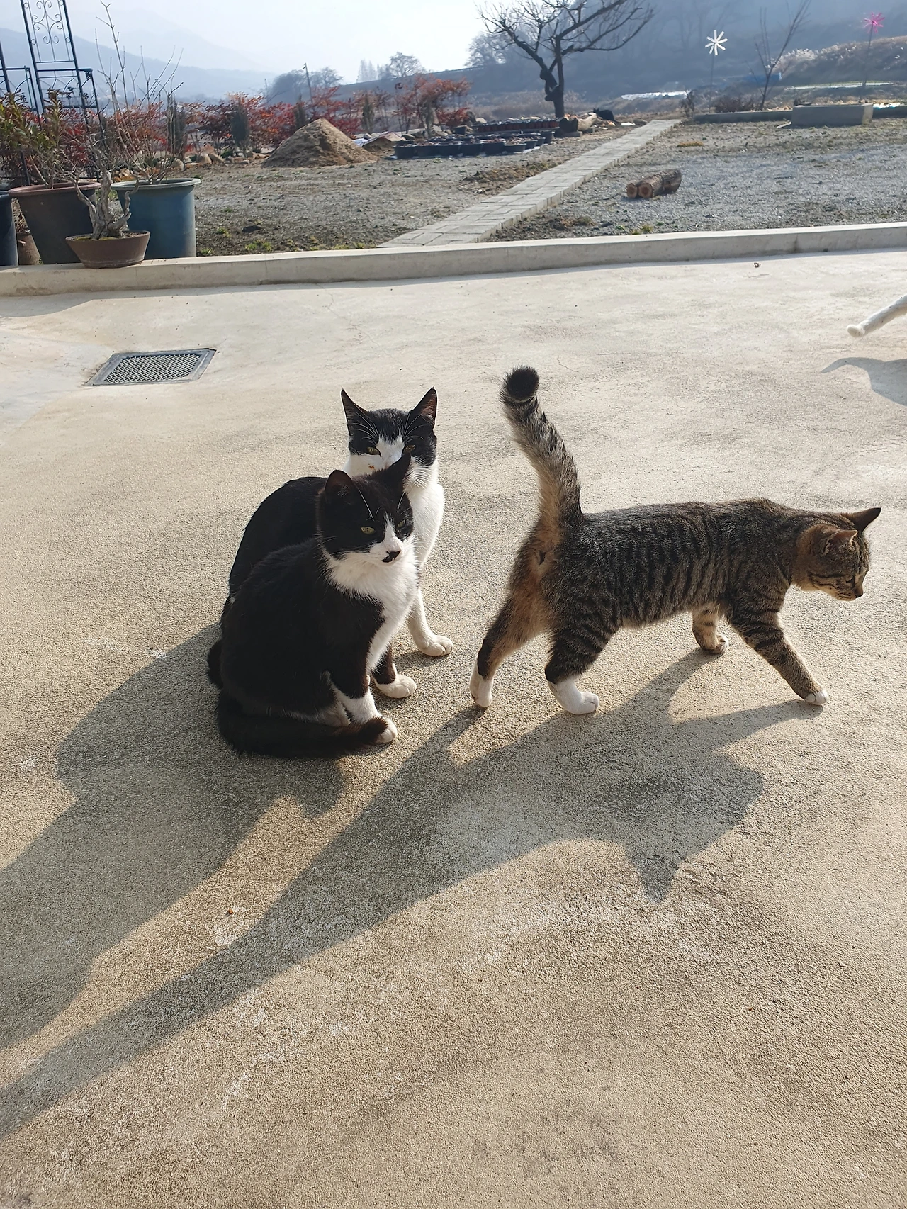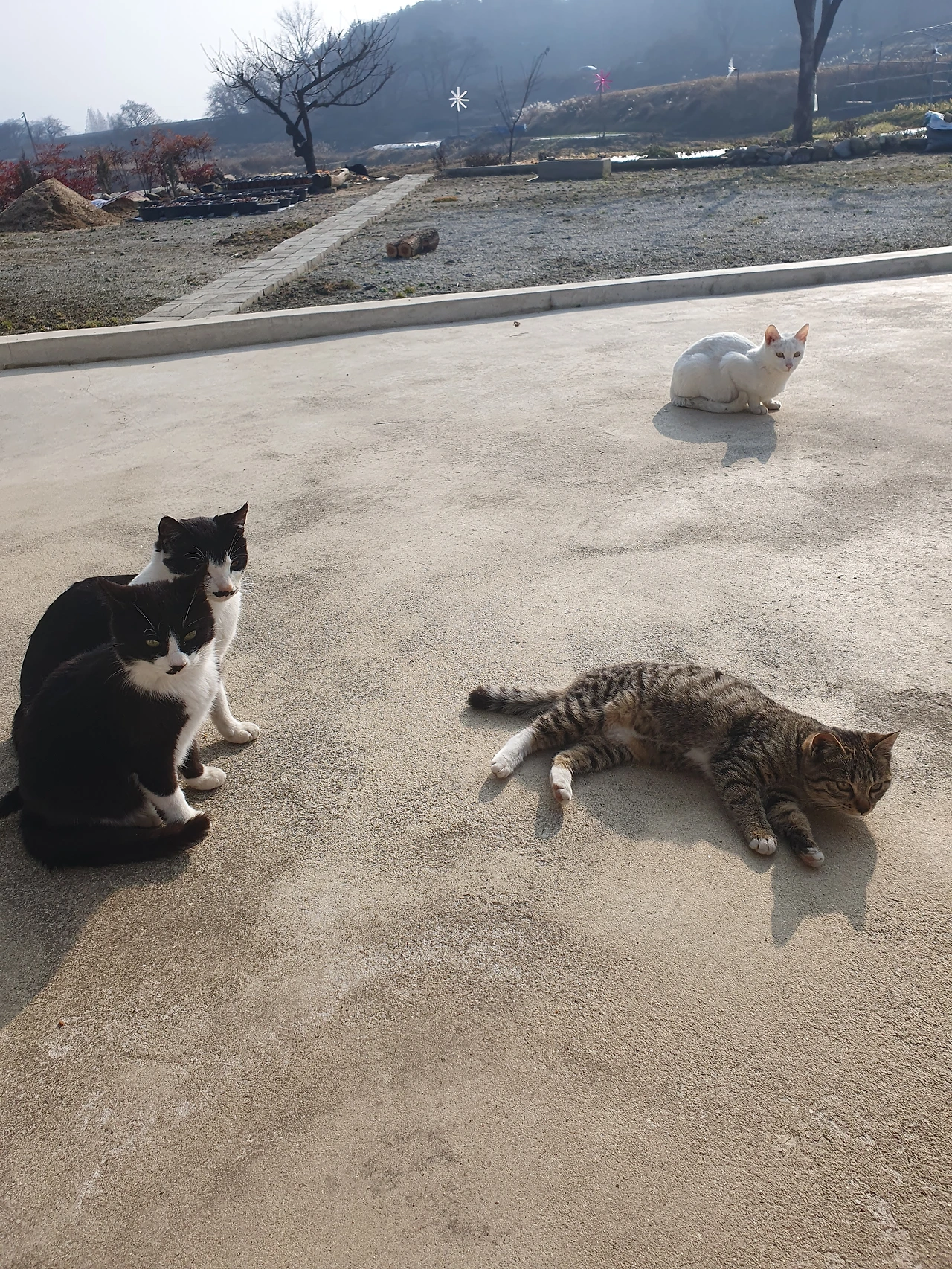 그리고 따뜻한 1시~2시 시간대에는 강아지와 거의 매일 산책을 하고 거의 집냥이 같은 마당냥이 애교를 봤다.
