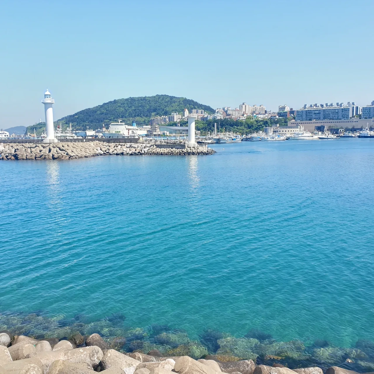 너무 파랗고 하애서 둘이 섞이지 못하는지 맡닿는 경계에 하늘색으로 희게 빛나는 띠가 보였다.