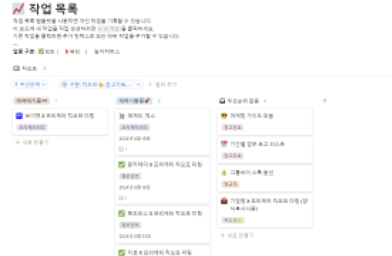 그리고 결과적으로는 현재 복잡한 업무 관리도, 킥오프 미팅 모두 수주한 것도 다 노션을 이용해서 하고있다.