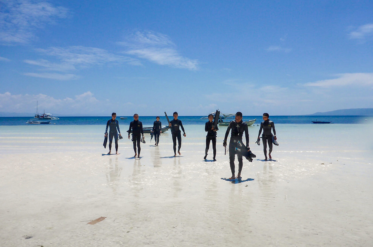 처음 필리핀 보홀에서 프리다이빙을 배운 지 반년 만에 다시 이곳에서 프리다이빙 강사가 되기로 마음먹었다. 단지 내가 느꼈던 바다의 고요한 평화를 함께 공유할 수 있는 인연을 만들기 위해서 프리다이브 팡라오에서 김동하 트레이너와 함께 FITC(Freediving Instructor Training Course)를 위한 트레이닝을 시작했다. 프리다이빙 강사가 되기 위해서는 강사로서 프리다이빙 이론에 대한 이해와 전문적인 강의 능력 평가 외에 프리다이빙 기술과 스태미나 평가가 중점이었다. 특히 프리다이빙 기술과 스태미나 부분에서는 정확한 수심과 시간, 횟수로 최소 요구 조건을 명시하고 있었다. SSI 프리다이빙 강사의 최소 요구 조건은 컨스턴트 웨이트(CWT, 고정 웨이트) 40M 이상, 스태틱(STA, 숨 참기) 4분 이상, 다이나믹(DYN, 수영장 잠영) 85M 이상, 다이나믹 노핀(DNF, 수영장 핀 미착용 잠영) 50M 이상으로 그 외 수심 25M에서 블랙아웃 다이버 레스큐, CWT 20M 1분 간격 5회 연속 다이빙 등 기본적으로 강사로서 필수적인 자질을 검증하는 평가다. 해양과 수영장에서의 종목 모두 프리다이빙 레벨3 다이버 평균 이상의 실력을 갖추고 있어야 하기 때문에 단기간에 준비하기가 쉽지 않다.