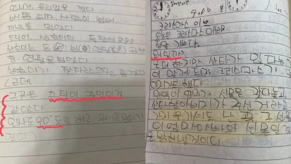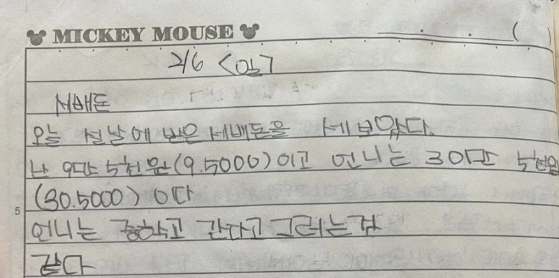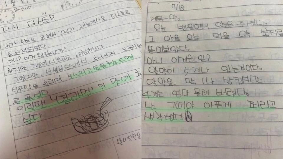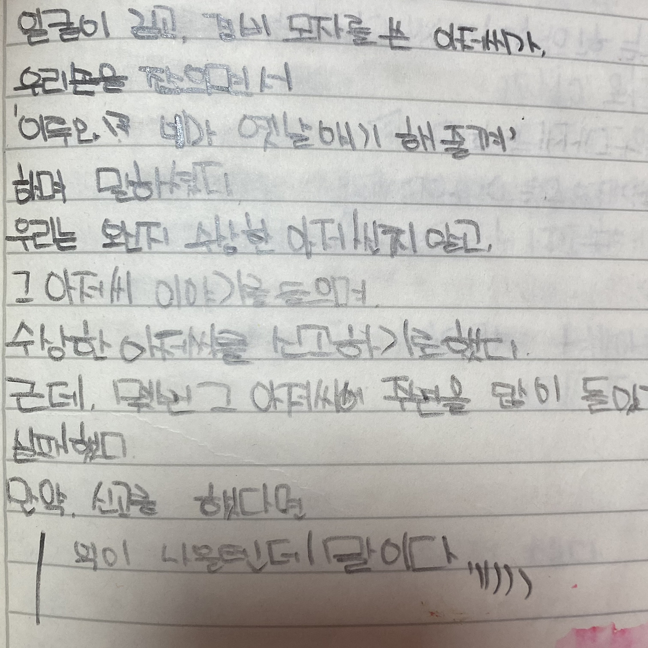 그 당시에는 일기를 매일 매일 쓰는 것도 모자라, 선생님께 확인까지 받아야 했다. 지금 생각해보면 나와 선생님과의 약속, 룰. 게으르지만 할 일은 하는 편이며, 부지런하지 않지만 잔꾀가 많은 스타일이었던 나는 일기를 쓰기 싫을 때는 이런 이야기들로 일기장을 채워나갔다. 조금 슬픈 건 그때나 지금이나 할 수 있는 영어가 비슷하다는 사실,