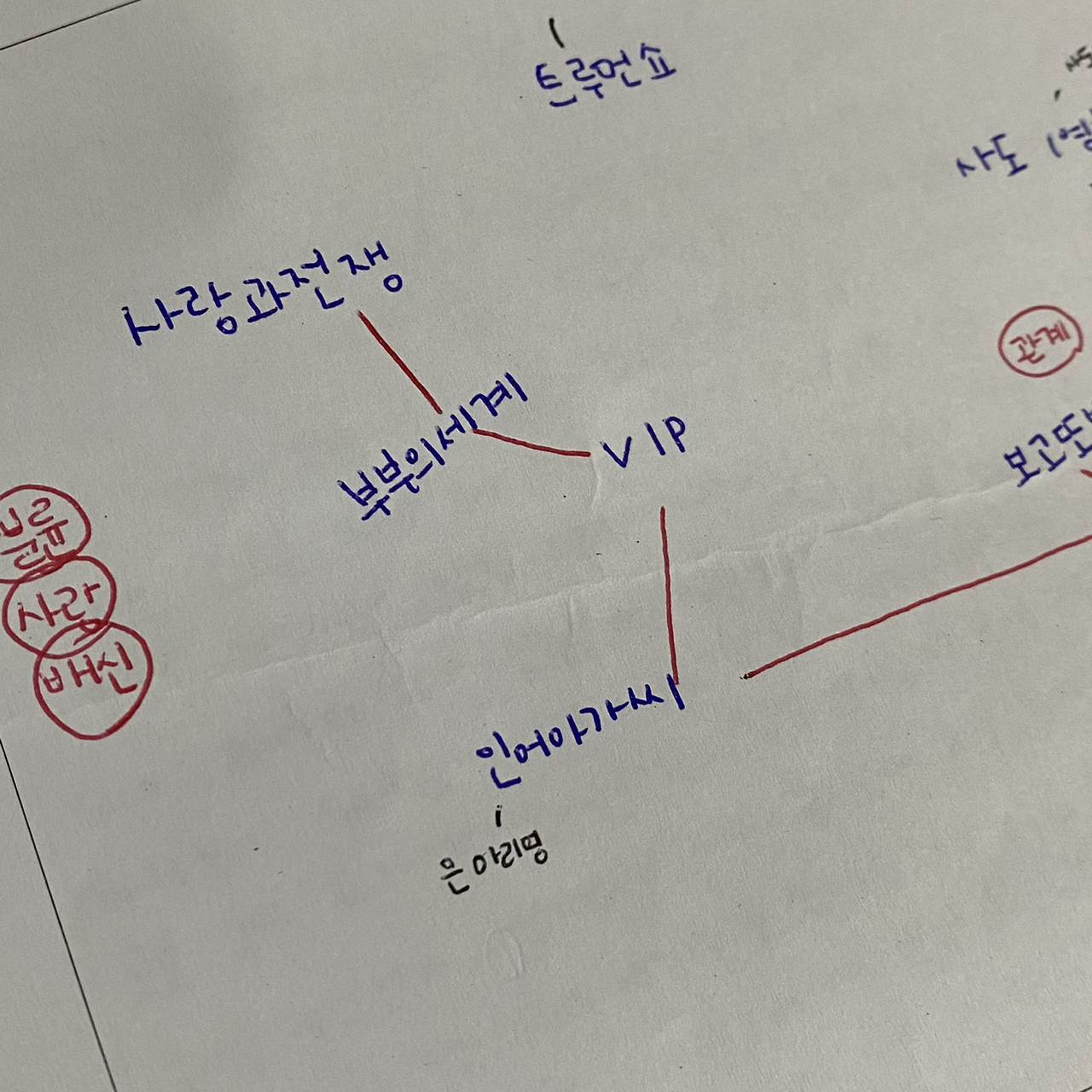 글쓰기 강의를 들었을 때 일이다. 강사님은 흰 종이 위에, 내가 좋아하는 콘텐츠들을 써보라고 하셨다. 내가 관심을 갖고, 자주 본다는 것은 즉 좋아한다는 것이니까. 나의 취향을 잘 아는 것부터가 좋은 글을 쓰기 위한 시작이라는 강사님의 말에 설레며 하나둘 나의 콘텐츠들을 적어내려가기 시작했다.