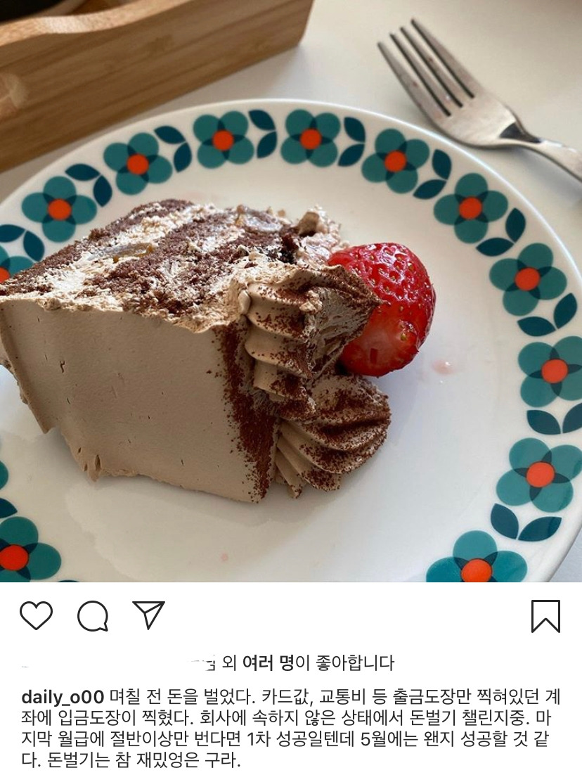 그렇지만 회사도 가끔은 좋았고, 즐겁기도 했지만 그렇다고 해도 회사에 다니는 건 싫었다. 그래서 이번만큼은 면접 근처에도 가보지 말고,스스로 집구석에서 돈을 벌 루트를 만들어놓자!라는 첫 번째 플랜이 성공!이라고 전광판에 써지던 순간, 나는 하나의 소중한 수확물을 얻었다.