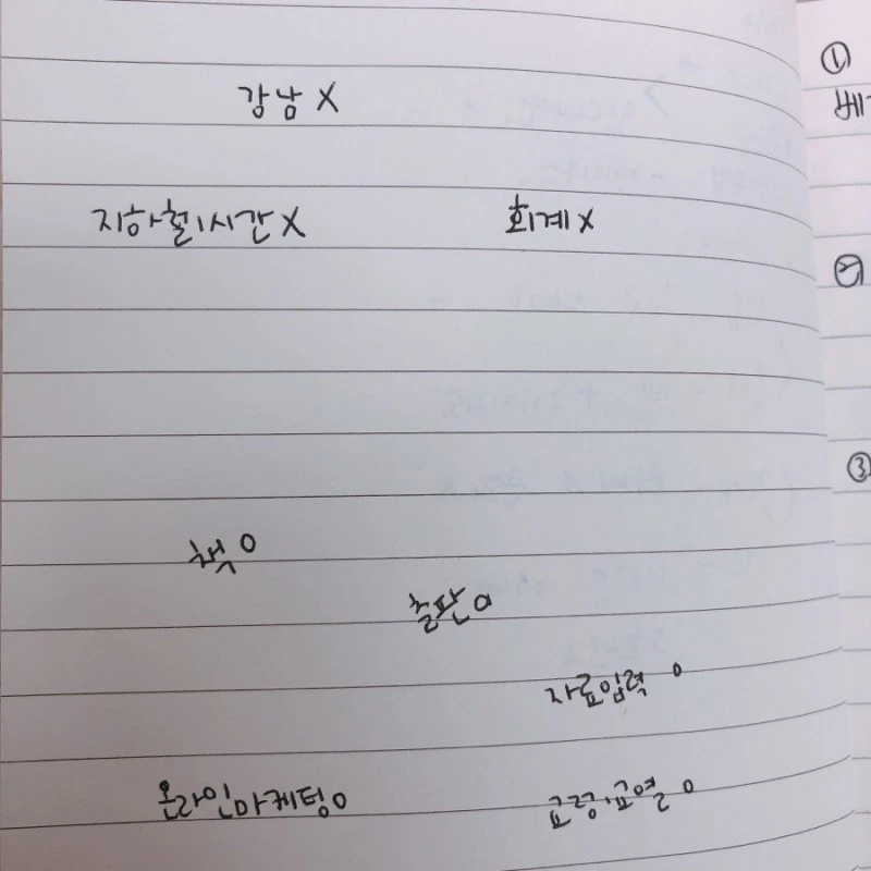 회계일만 아니면 무엇이든 할 수 있으리라 생각했는데, 예상외로 하고 싶은 일이 있었다. 그것도 많이. 친구들과 독립출판물을 만들어 (글이 아닌 문답형 책) 펀딩에 성공한 경험 덕인지, 나는 더더욱 출판과 책에 관심이 많아졌다. 혹은 가만히 앉아서 자료를 입력하는 일이라던가, 마케팅에도 관심이 있었다. 이렇게 하고 싶은 일이 있었으면서 왜 헛물을 켜고 있던 것인가!