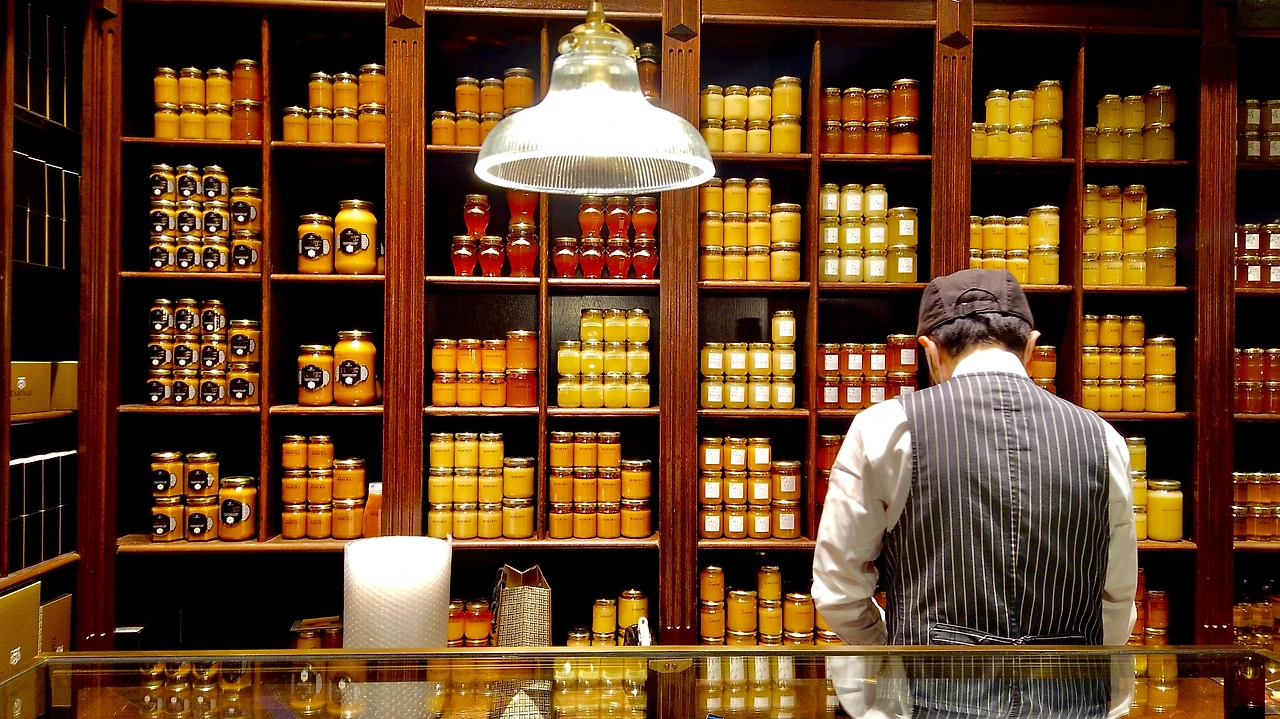 라베유는 꿀편집샵이다. 이들은 전 세계의 다양한 꿀들을 직접 채밀해서 판매한다. 기존의 라베유 매장들은 백화점이나 상업시설에 샵인샵으로 입점한 게 많아서 라베유만의 매력을 찾아보기는 어려웠다. 꿀을 파는 가게? 이 정도밖에 눈에 들어오지 않았다. 당연히 라베유를 바라보는 시선도 그 정도에서 멈췄다. 하지만 라베유는 2023년 11월에 새롭게 오픈한 아자부다이힐즈에서는 단독 매장을 열었다. 원목으로 만든 장식장에 들어찬 수많은 꿀들. 우아한 갈색 나무 선반에 가득한 황금빛 꿀병들은 자연이 우리에게 선사하는 보물 그 자체다.