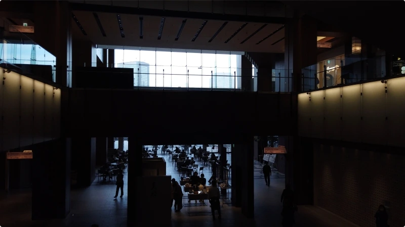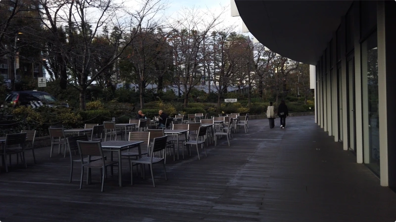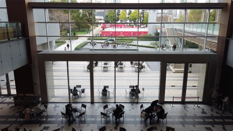 이것으로 끝이 아니다. 빛이 내려오는 주변에 카페를 입점시켜 공간효율성도 끌어올렸다. 여기서 주목해야 할 점은 지상에서 들어오는 주변의 원형 벤치다. 마치 분수대를 연상케 하는 벤치구조는 이곳을 지나가는 누구든지 쉴 수 있으며, 여기에 설치된 예술작품도 이 공간을 지상같이 공원처럼 만든다. 이 부분은 도쿄미드타운 롯폰기의 입구디자인을 겸하면서도, 주변사람들에게 공원역할도 하는 셈이다. 이런 부분은 소니가 2018년에서 2021년까지 운영했던 소니 긴자파크와 그 역할이 동일하다