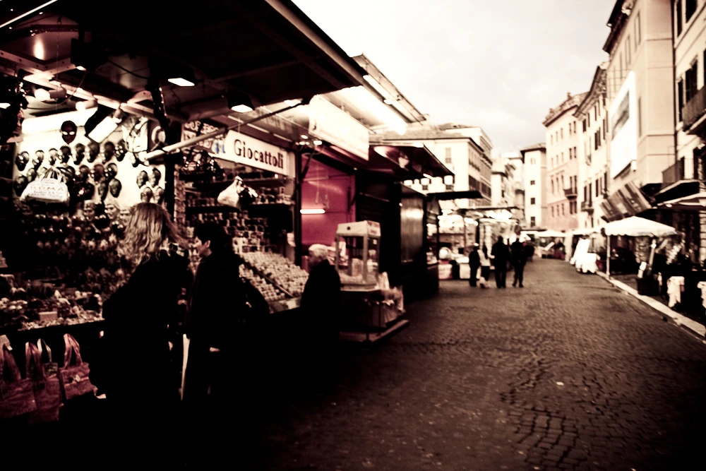 로마에는 항상 광장이 있고 그 광장에는 조그마한 시장들이 보인다.