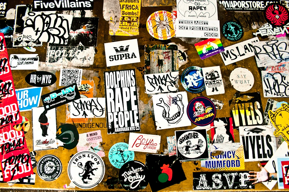 뉴욕 첼시 근처에서 본 벽에는 스니커가 덕지덕지 붙어있었다.