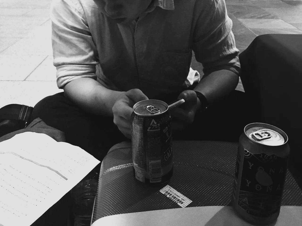 나는 술을 거의 마시지 못한다. 도쿄 하네다 공항에서 도쿄 모노레일을 기다리면서 맥주와 하이볼을