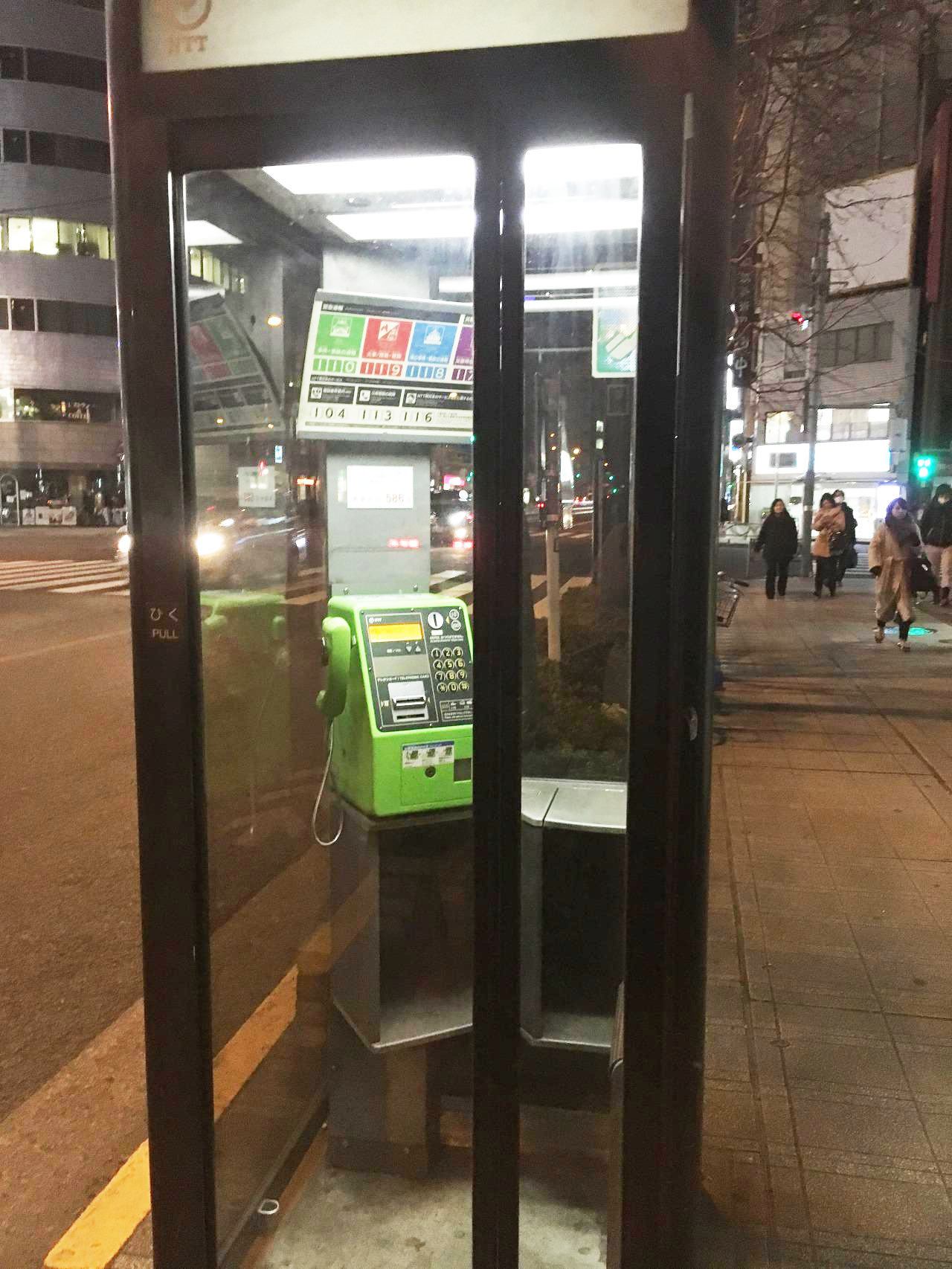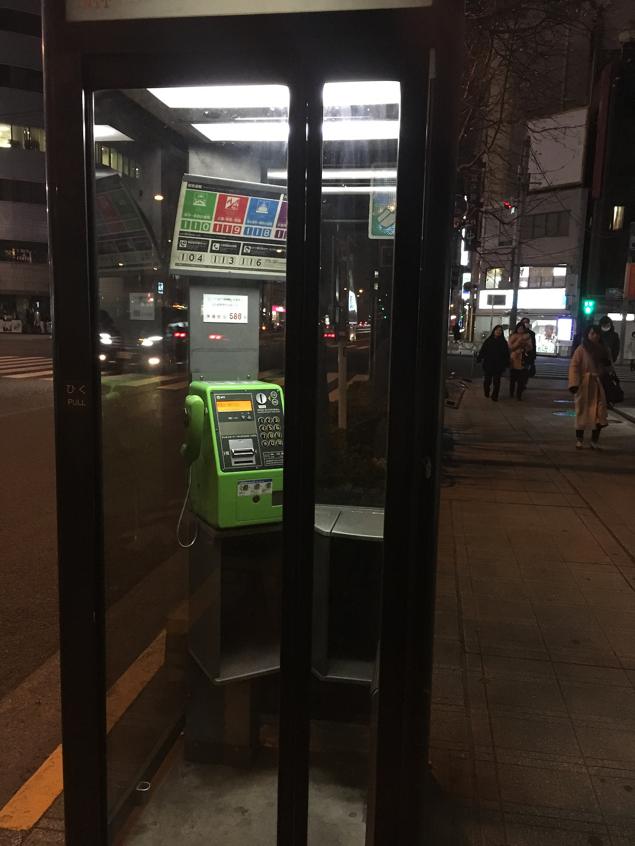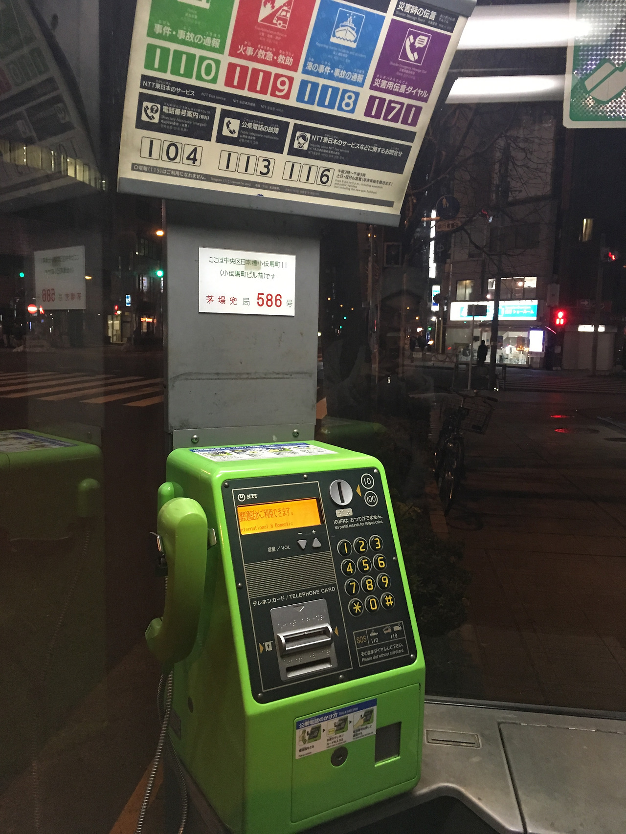 나는 주의를 기울이고 도쿄 거리를 걸었다. 얼마 지나지 않아서 공중전화박스를 보았다.