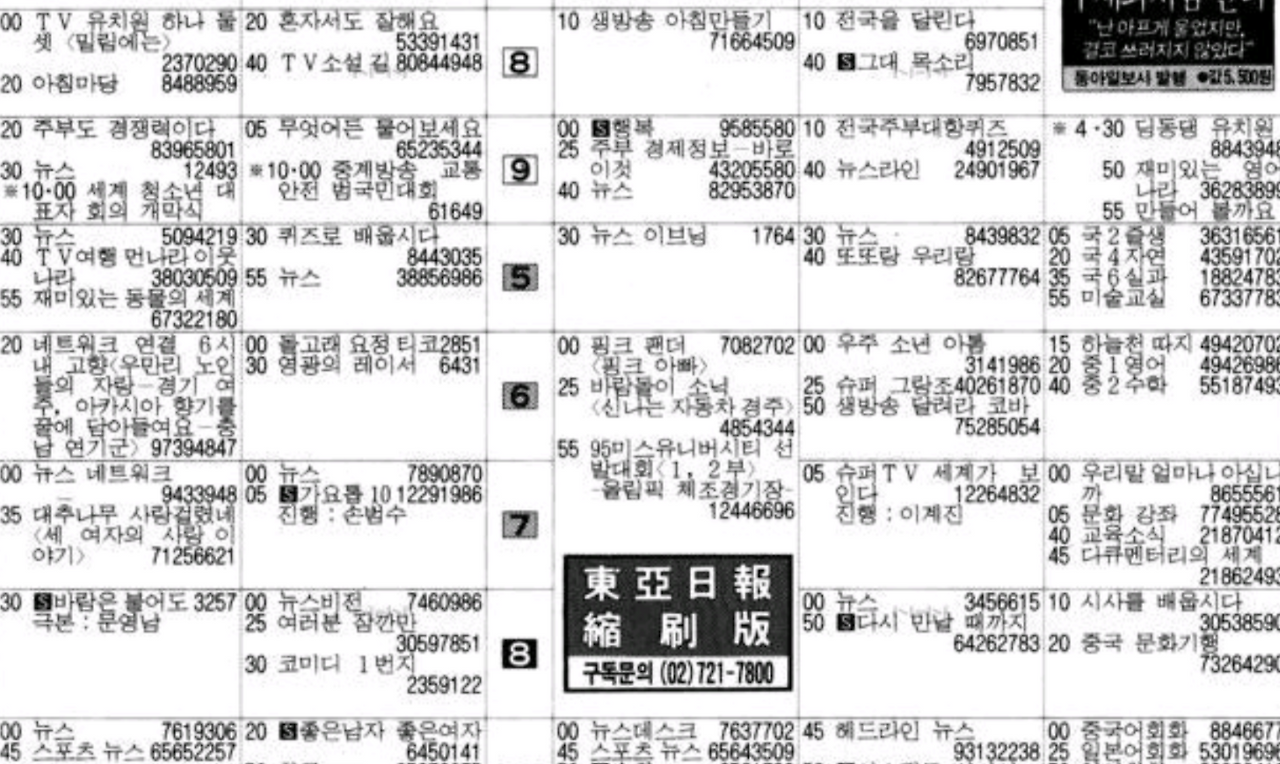 유년시절 나는 아침마다 신문을 보았다. 내가 신문을 본 이유는 딱 한 가지였다 TV 방송시간표를 보기 위해서였다. 지금은 수많은 방송사를 비롯해 유튜브 채널까지 다양 하지만 당시에는 EBS, KBS1, KBS2, MBC, SBS가 전부였다. 방송시간표를 보고 그날 방영하는 만화를 확인했다. 그 당시에는 오직 드라마만 주말에 재방송을 했고 만화를 재방송하는 일은 없었다. 항상 5시 30분경에는 티브이 앞에 앉았고 6시 30분 혹은 7시까지는 만화를 보았다. 90년대 시청자는 철저히 방송사가 만든 스케줄을 따라가야 했다.