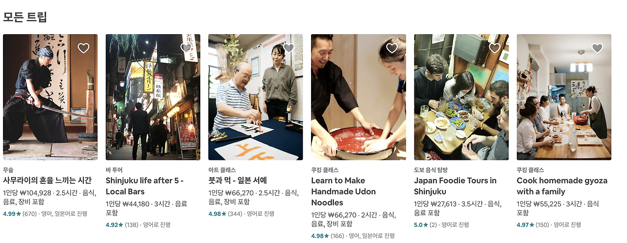 에어비앤비는 숙소뿐만 아니라 그 지역문화 체험 프로그램도 판매한다. 개인 취향에 맞는 프로그램을 선택할 수 있으며 반응도 아주 좋다. 여행 디테일을 살리는 체험 프로그램. 현지인과 함께하는 프로그램은 인기 만점.