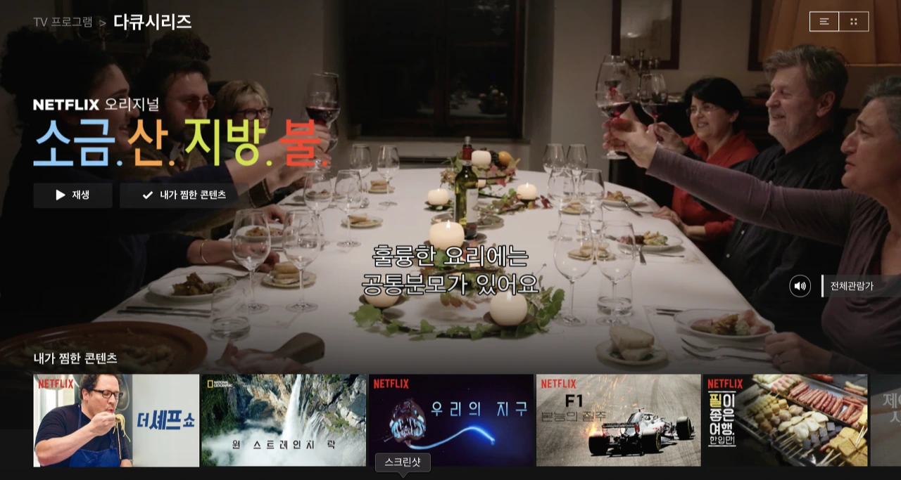 나는 저장 목록을 보고 일단 넷플릭스에 들어가서 관련 다큐를 찾아본다.