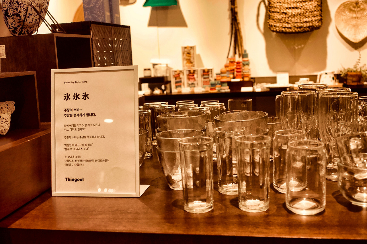 만일 띵꿀마켓이 제안하는 모든 게 필요하면 모두 구매하면 된다. 만일 필요한 물건만 있으면? 선택해 구매하면 된다. 여기에 띵꿀마켓이 상품 코너마다 비치한 문구는 공간을 만들고 싶어 하는 마음을 자극할 뿐만 아니라, 공간에 담긴 '정서'를 추가적으로 설명한다. '