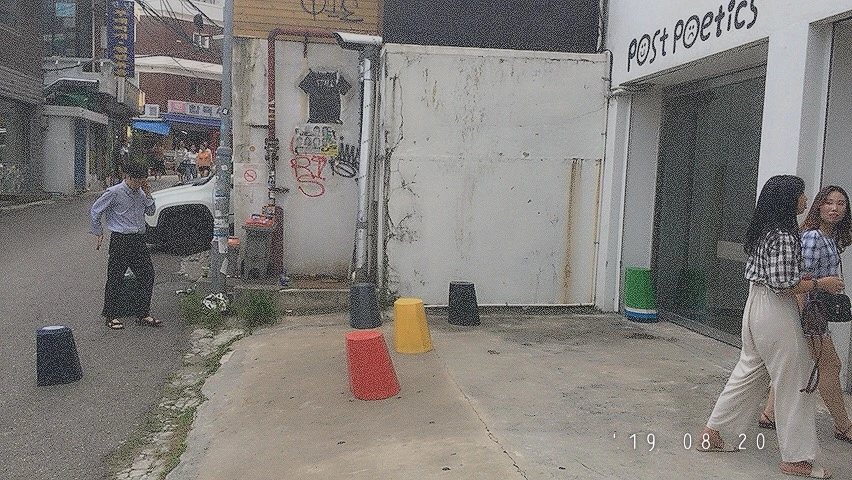 빌딩 일부는 골목길에 그대로 노출되어있다. 빌딩 앞에서는 프라이탁이 지하 3층이라고 설명한다. 그렇지만 빌딩 뒤 한남오거리로 가는 내리막길에서 보면 프라이탁은 지상 1층이다. 낡은 건물 내 공존하는 과거와 현재'의 감성은 디앤디 파트 먼트, MMMG, 앤트러사이트가 추구하는 가치를 모두 담아내는 최적 공간이다. 일부러 찾아야만 비로소 발견하는 공간 속 디테일들. '낯섦과 친숙함'이다.**도로에서 보면 지하 2층이 건물이 골목길에서 보면 지상 2층으로 바뀐다.