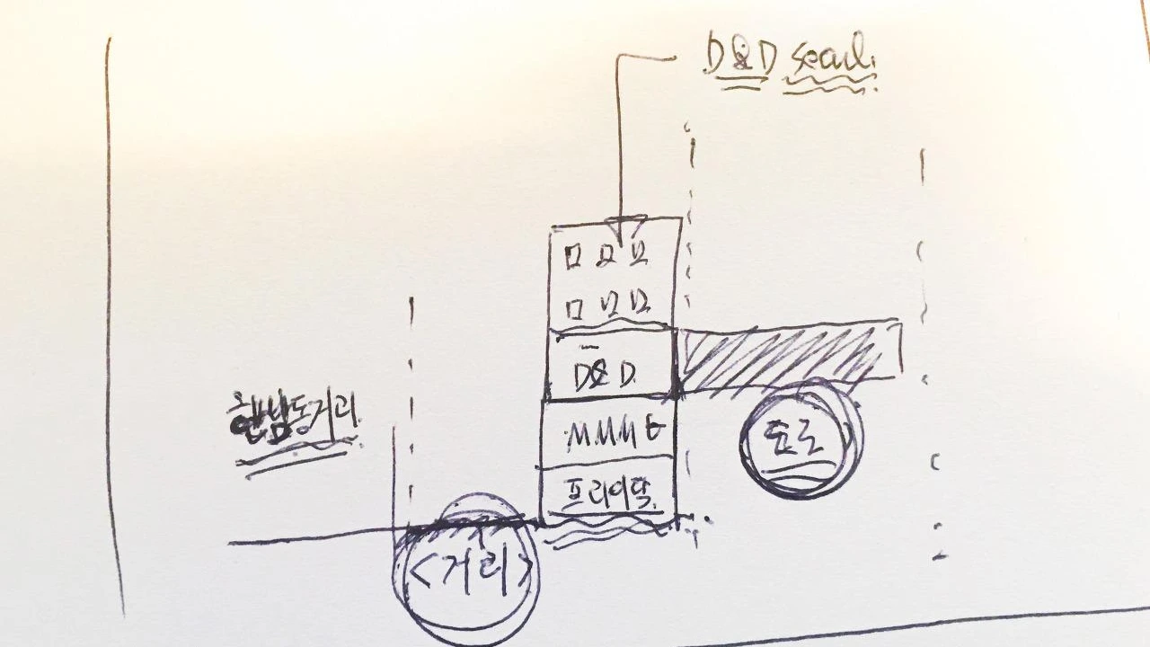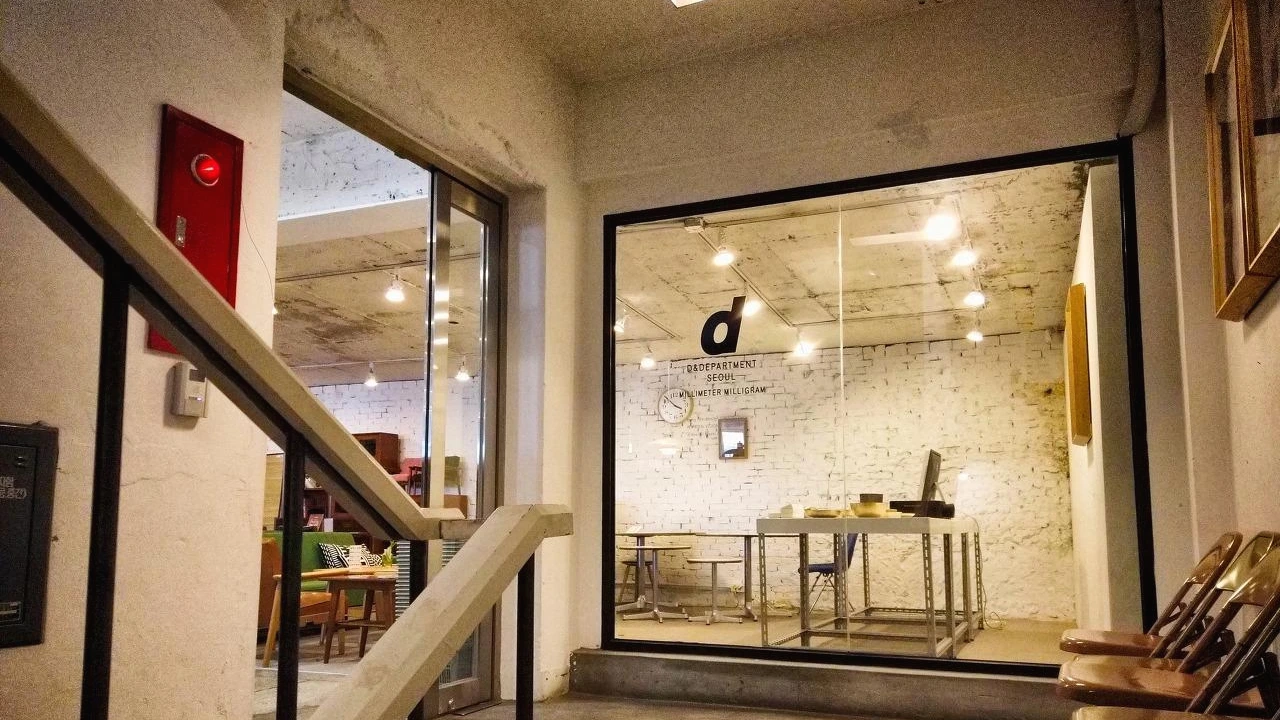 건물은 옛 이태원과 한남동 건물 느낌이 남은 낡은 건물이다. 나의 작은할아버지가 경리단길에 사셔서 어릴 적 한남동과 이태원을 자주 갔는데, 그때마다 느꼈던 어린 시절의 감성. 딱 그 느낌이었다. 또한 건물구조가 매우 신기하다. 디앤디 서울이 입점한 빌딩 앞에는 디앤디가 지하 2층에 있다고 안내한다. 그렇지만 프라이탁 매장에서 디앤디 서울점을 가면 지상 2층 같다. 창문까지 있으니까. 낡은 건물과 모던한 디자인은 앤트러사이트, MMMG, 디앤디 파트 먼트, 프라이탁까지 일관적으로 이어진다. 특히 디앤디와 MMMG는 철학도 비슷하기에 매장 디자인, 조명, 아이맥 활용까지 이어지는 맥락이 모두 동일하다.