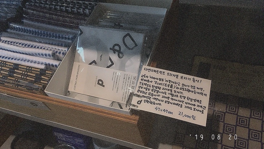 1999년은 내가 중학교 2학년이던 시절이다. 나는 '디앤디' 서울을 찾아가면서 '90년대 말과 2000년대 초' 디자인을 기대했다. 아쉽게도 내가 기대한 만큼의 디자인을 디앤디 매장에서 충분히 보지는 못했다. 하지만 녹색 플라스틱 용기, 팬텔 볼펜, 말표 구두약만으로도 20년 전을 기억하기에는 충분하고도 남았다. 특히 중등학생 시절 학교 근처 분식점에서 자주 보던 녹색 플라스틱 용기는 무척 반가웠다. 물론 지금도 몇몇 분식점에 가면 녹색 플라스틱 그릇에 음식을 준다. 그 반가움이란 말로 표현하기 힘들다. 추억을 함께 먹는다고 해야 할까?'20년'을 기억할 수 있는 상품은 충분했다.