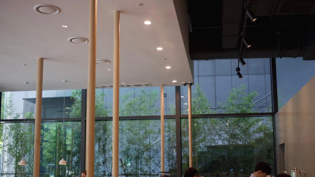 블루보틀 역삼점 콘셉트는 대나무 숲이다. 이를 연출하기 위해 매장 안에 다양한 두께의 원형 나무기둥을 설치했다. 대나무 숲을 생각하면 가장 먼저 떠오르는 단어는 무엇일까? 나는 '시원함'이다. 누군가에는 무협물일지도 모르겠다. 또 무엇이 있을까? 대나무 숲 위에서 쏟아지는 햇살도 있다.