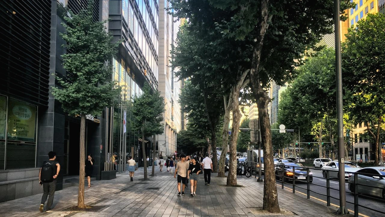 역삼역은 밖에서 들어오는 채광을 강조하기 위해 창가 쪽에서는 바 형태의 좌석을 만들었다. 오후 3시부터 5시 20분까지의 채광을 관찰해보니 흥미로웠다. 일단 역삼역과 강남역을 가로지르는 강남대로는 가로수 배치와 공간이 대칭을 이룬다. 해가 점 점 더 짧아질수록 창가와 키친 사이의 빛 간격이 줄어들고 그에 따라서 공간 느낌이 미세하게 바뀌는 모습을 볼 수 있었다.