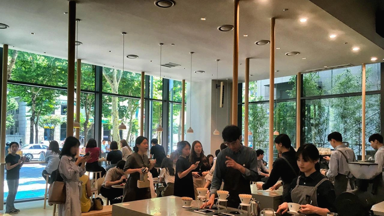 블루보틀이 매장 인테리어에서 중요하게 여기는 요소는 빛이다. 언제나 매장 디자인에 채광을 염두에 두고 공간을 만든다. 스타벅스 같은 경우 매장 내부를 언제나 어두운 밤색과 조도가 낮은 조명을 사용해 아늑한 분위기를 만든다. 반면에 블루보틀은 지역의 고유함을 담은 인테리어를 만든다. 적어도 내가 가본 매장들은 말이다.(블루보틀 성수, 삼청, 신주쿠, 아오야마, 기요스미 시라카와, 나카메구로, 산겐자야, 롯폰기, 역삼점.)
