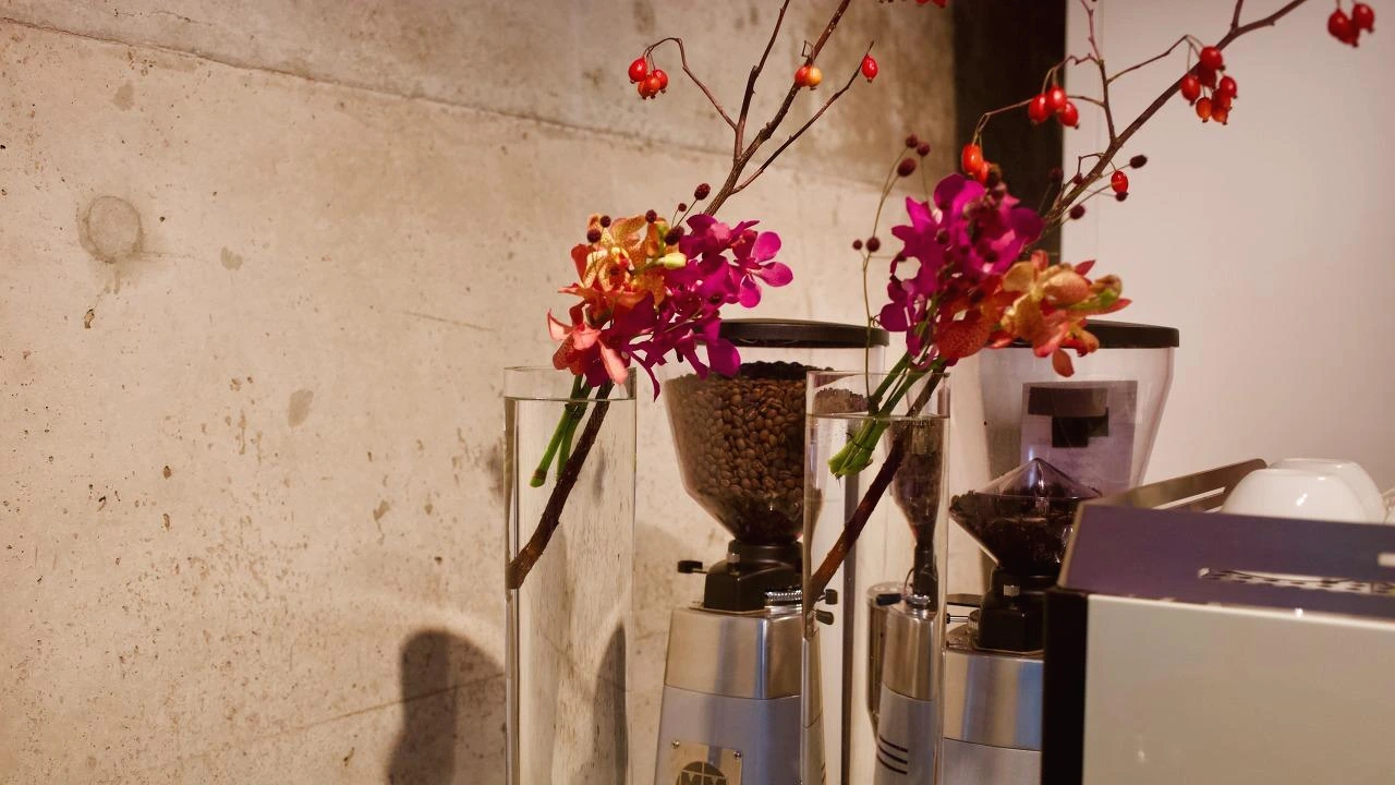 블루보틀 간다점 매장 자체가 벽돌과 금속이 많고 주변에 식물이 없다 보니 꽃꽂이가 돋보인다. 또한 매장 밖의 검은 철 의자도 공간에 통일성을 더한다. 주변 상가와 잘 어울리는 치킨집 같은 느낌? 블루보틀 특유의 세련된 느낌보다는 편안함이 유독 강한 곳이다.