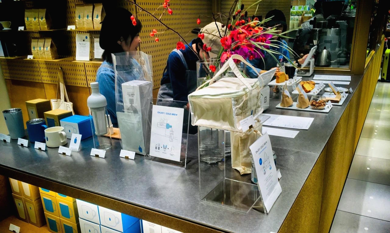 앞서 말한 대로 다이마루 도쿄는 오미야게를 강조한 식품매장으로 도쿄점을 꾸렸다. 나는 블루보틀 관계자가 아니라서 왜 다이마루점은 테이크아웃 전용인지 모른다.(간 다점도 테이크아웃 전용이지만 핸드드립바는 있다.) 하지만 일본 내 블루보틀 매장들의 위치를 확인해보면 다이마루점은 테이크아웃 전용인지 이해가 된다. 블루보틀 매장들은 도쿄에 몰려있다. 그 외 매장은 교토, 고베밖에 없다. [2019년 기준.]