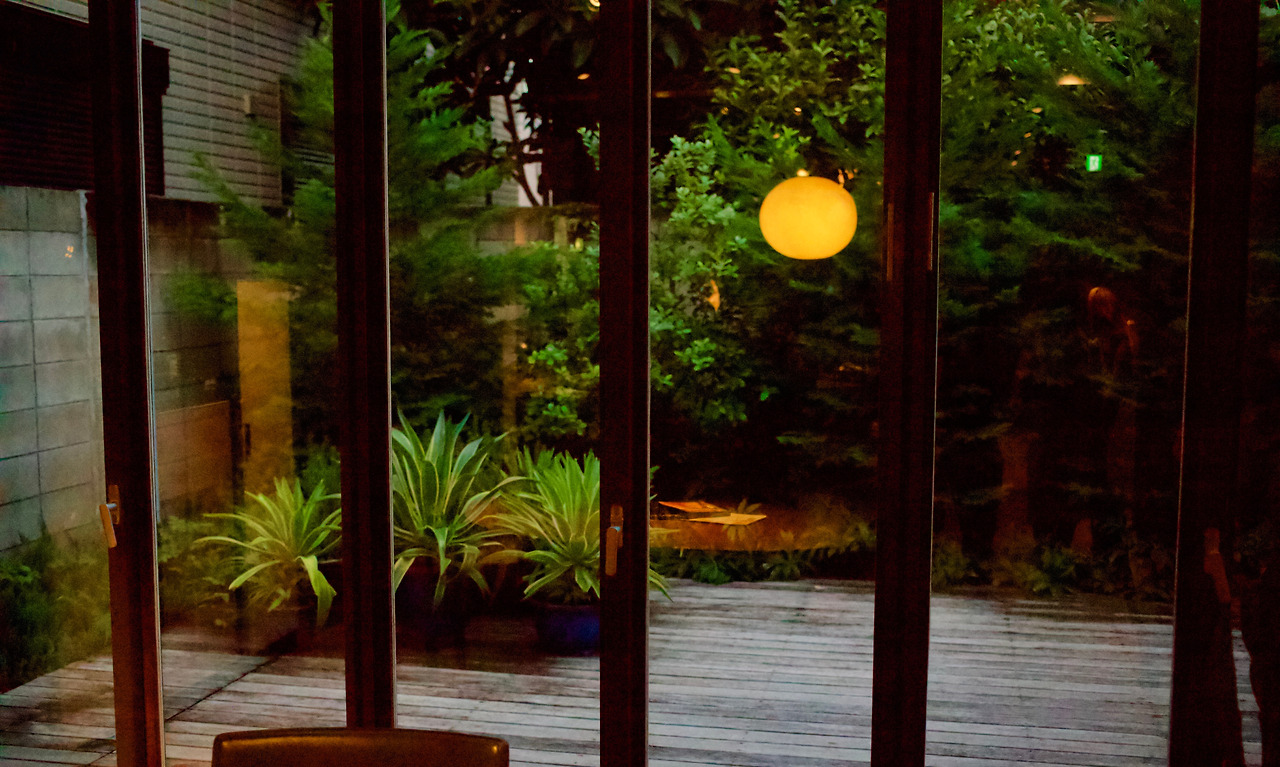 매장에 들어서면 큰 유리창이 보인다. 유리창을 통해 매장 안뜰에 자리한 정원을 볼 수 있다. 유리창 너머 보이는 정원은 쓰보니아같은 '작은 정원'보다는 서양식 정원에 좀 더 가깝다. 매장에 온 사람들은 유리창 앞에 놓인 원탁 테이블 앞에 놓인 의자에 앉을 수 있다. 뿐만 아니라, 낮은 조도와 아늑한 조명은 방문객들이 '누군가 집에 방문한 평온함'을 더 느낄 수 있도록 돕는다.