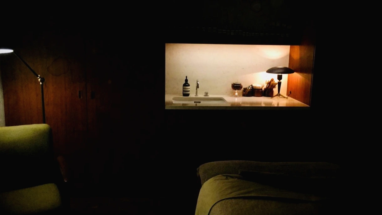 빛에 반사되어 생긴 어두운 그림자, 아늑한 조명을 좋아하는 일본인들. 이곳을 디자인한 오가타 신이치로는 다니자키 준이치로가 ‘그림자에 대해서’에서 묘사한 미감을 이곳에서 구체적인 공간으로 구현한다. 다니 자치 준이치로는 '그림자에 대해서'에서 그림자 속 어두움에 대해서 다음과 같이 묘사한다.