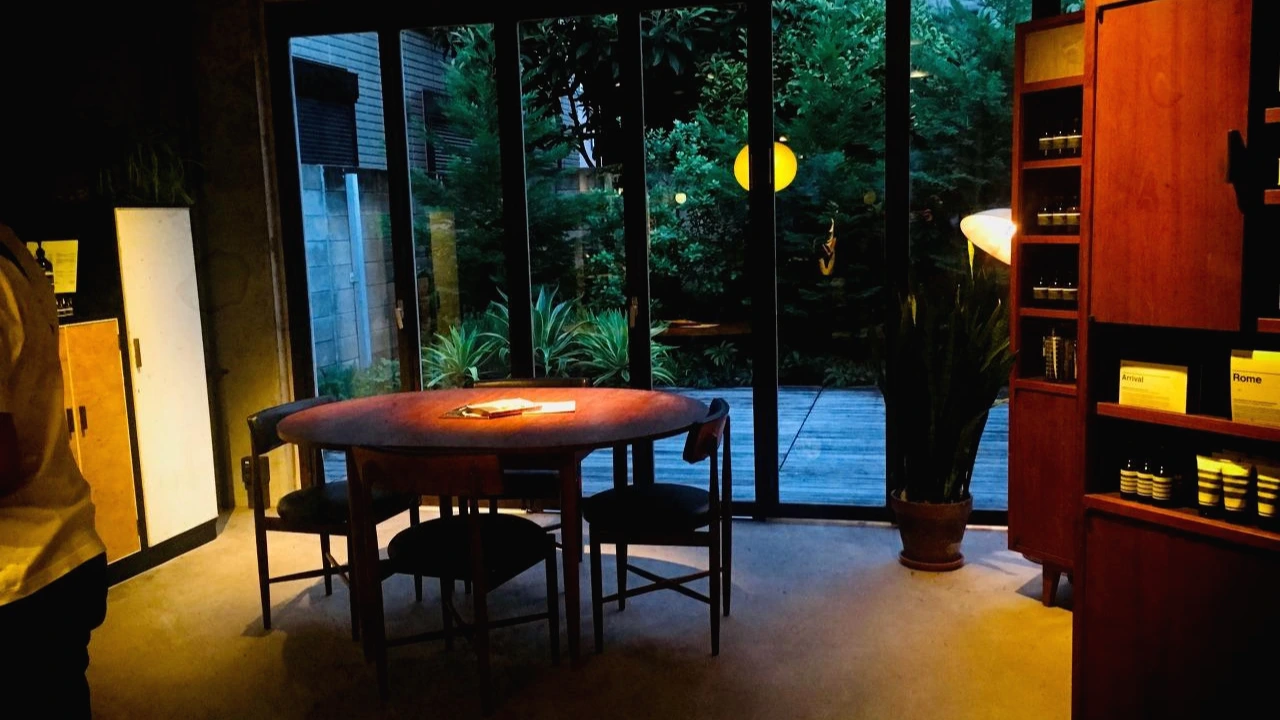 10평형의 매장 인테리어는 쇼와시대 초기 상업 및 산업 중심지에서 주거지역으로 발전한 나카메구로 지역에서 많은 영감을 얻었다. 1950년대 가정을 연상시키는 친숙한 가구는 콘크리트 벽과 천장, 금속 싱크대와 찬장, 야자나무와 바와 균형을 이루고 있다.