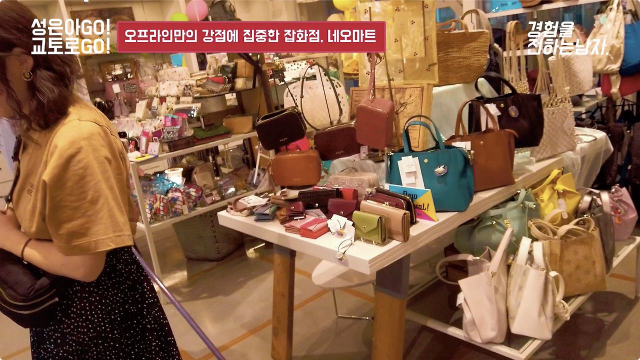 네오 마트는 온라인이 가지지 못한 '아기자기함'이라는 정서를 매장에서 표현한다. '상품 카테고리'로 상품을 진열하지 않고 '정서'를 중점으로 진열한다. 온라인 쇼핑은 은 연출된 이미지 거나 스튜디오에서 촬영한