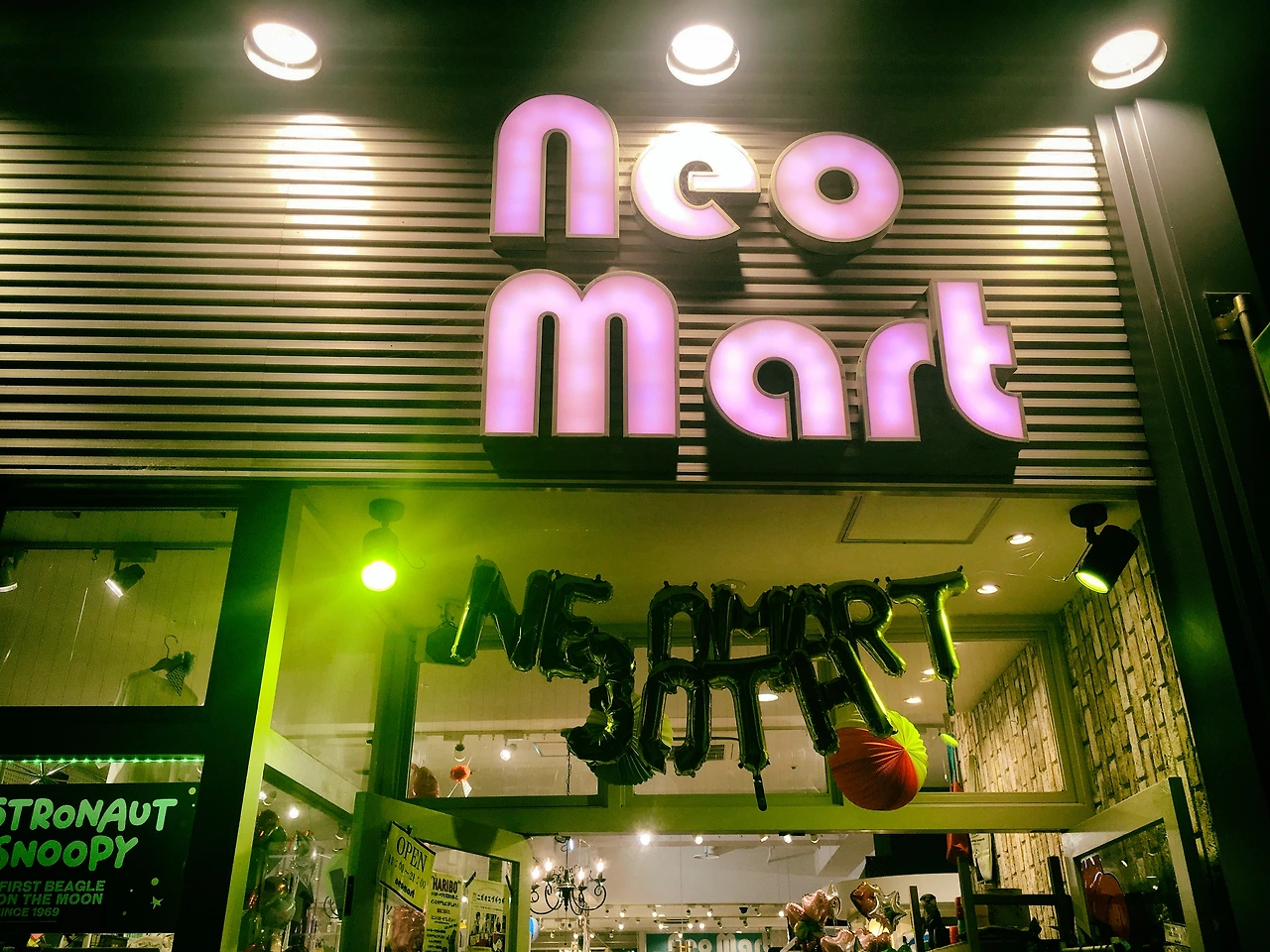 네오 마트 매장은 뉴욕 느낌을 연출하고자 시도가 엿보인다. 가게 간판에 그려진 건물도 엠파이어 스테이트 빌딩이다. 하지만 매장 안은 오히려 돈키호테에 더 가깝다. 상품들이 너저분해 보이지만 동선은 원형으로 계속 순환하고 있다. 처음에는 산만해 보이지만 어느 순간 자연스럽게 공간을 즐기고 있는 자신을 보고 있는 건 결코 우연히 아니다. 여기에 높은 천장은 어지러운 공간을 보다 쾌적하게 만드는 역할을 하고 있다.