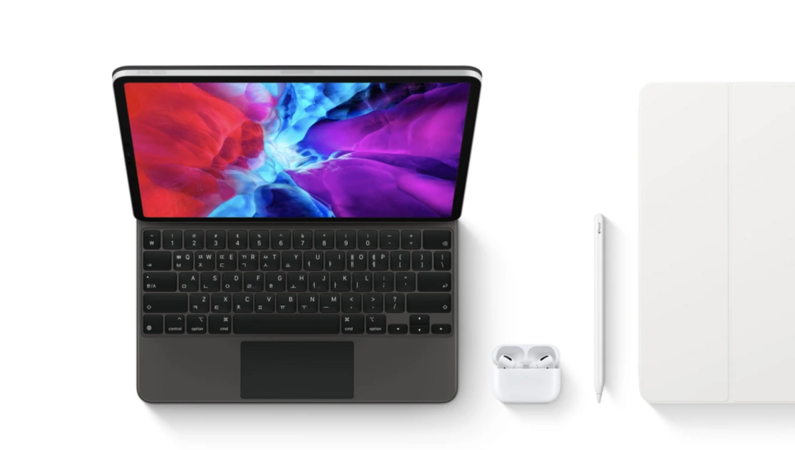 애플 홈페이지 속 아이패드 프로와 매직 키보드 사진을 보자.
