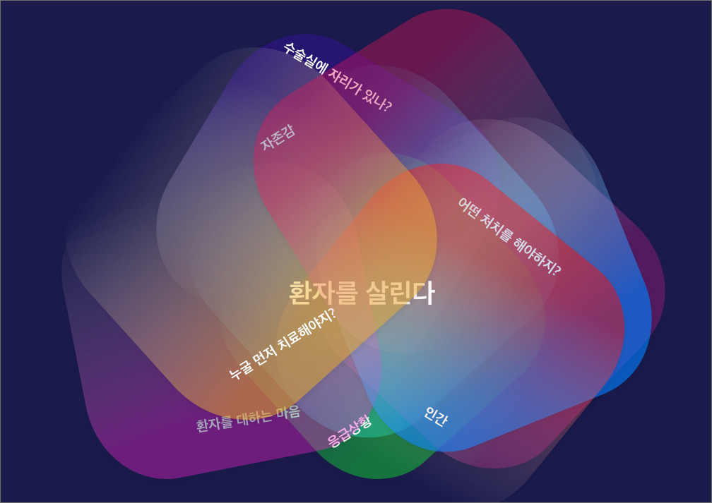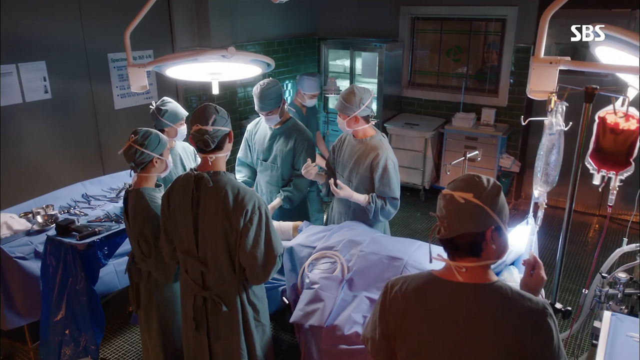 김사부에서 응급실과 수술실은 '삶과 죽음'이 교차하는 동일한 맥락을 가진 장소다. 사람들 상처가 응급실에 끝나거나 혹은 수술실로 가거나 둘 중 하나다. 환자가 수술실로 가는 경우 감정 진폭은 더 커진다. 단지 수술실은 '차분해야 한다'라는 규칙이 있기에 감정의 진폭이 잘 보이지 않을 뿐이다. 또한 수술실에서 조용히 수술하는 모습은 죽음에 대한 초조한 느낌만을 낮춘다. 유려하게 진행되던 수술. 수술이 잘 끝나는 경우는 진폭 된 감정들이 안도로 바뀐다. 하지만 수술 중 환자상태가 급변하는 경우에는 분위기는 순식간에 긴박해진다. 차분한 음악은 고조되는 음악으로 바뀌며, 수치, 대화톤 모두 부정적인 느낌으로 변한다. 모든 의학드라마도 감정의 진폭이 크지만 응급상황을 다루는 김사부에서는 유독 그 폭이 더 심하다.