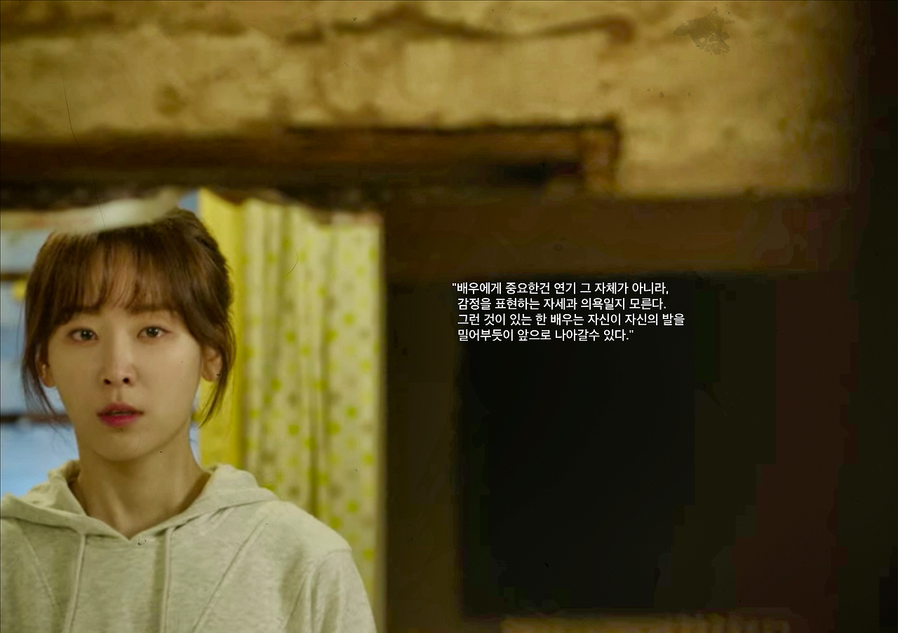 이와 반대에 있는 연기는 약하고 부드러워 외부의 다양한 힘을 받아들이는 '약한 연기'입니다. 약한 연기는 배우 그 자체보다는 드라마 안의 다양한 요소들을 흡수해 드라마를 부드럽게 밝히고 홀연히 사라집니다. '약한 연기'는 드라마의 내력을 강화시키고 외력을 분산시키죠. 하지만 건축과 다르게 이기는 연기와 지는 연기는 우열함을 논할 수 없습니다. 단지 방향이 다를 뿐이니까요.