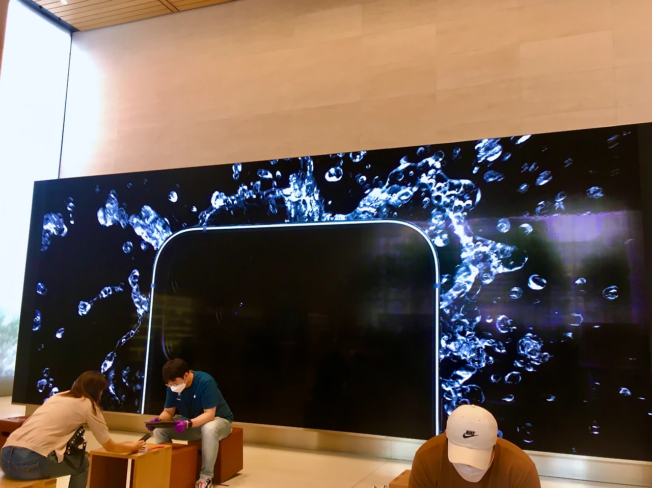 애플스토어 가로수길에 들어가면 큰 스크린에 시야에 들어온다.