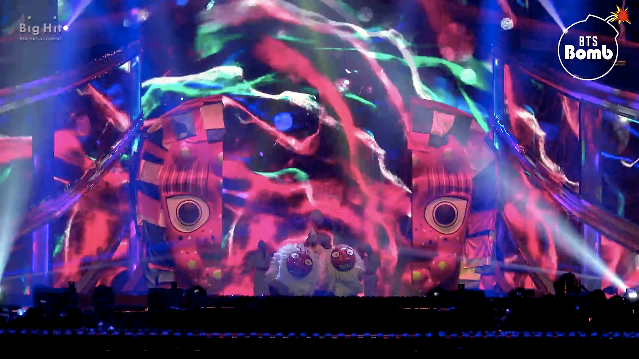 또한 'IDOL' 무대 뒤의 디지털 아트 역시 한국 전통문화를 이미지로 강렬하게 표현한다.