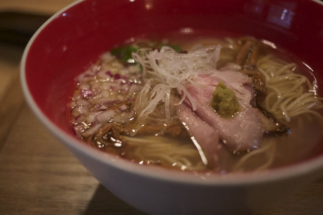 입속을 감아 돌아간다. 아쉬운 점은 국물을 삼키고 나서 간장 짠맛이 혀끝과 목 끝에 남아서 먹다 보면 물을 마셔야 한다. 그러나 2017년 1월(2017 미슐랭 가이드 도쿄 발행 직후)에 가보니