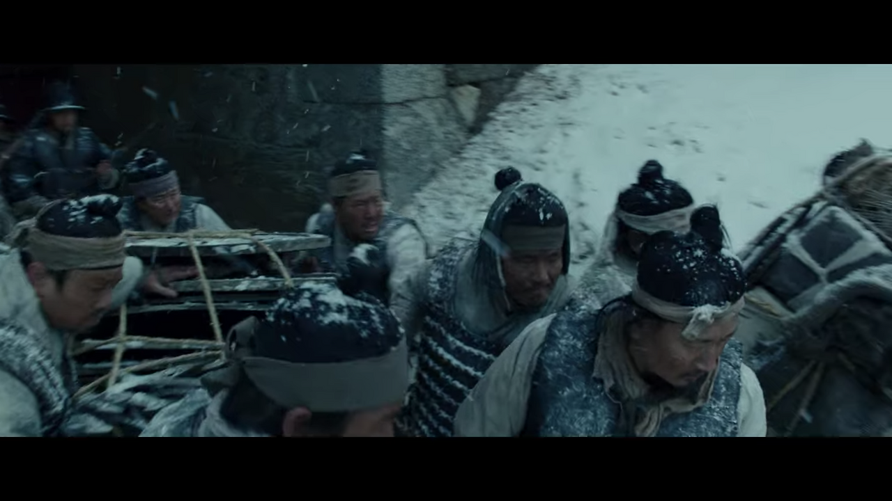 '혹한'의 거친 질감과 차가운 정서는 영화 안으로 무사히 들어와 배우들 연기가 시나리오에 잘 스며들게 돕는다. 영화 초반 최명길(이병헌 분)이 혹한 속에서 청나라에 외치는 모습이 압도적인 이유도 이 때문이다.'혹한'이 돋보이는 장면은 처음부터 나온다. 김상현이 늙은 사공을 베는 장면이다.