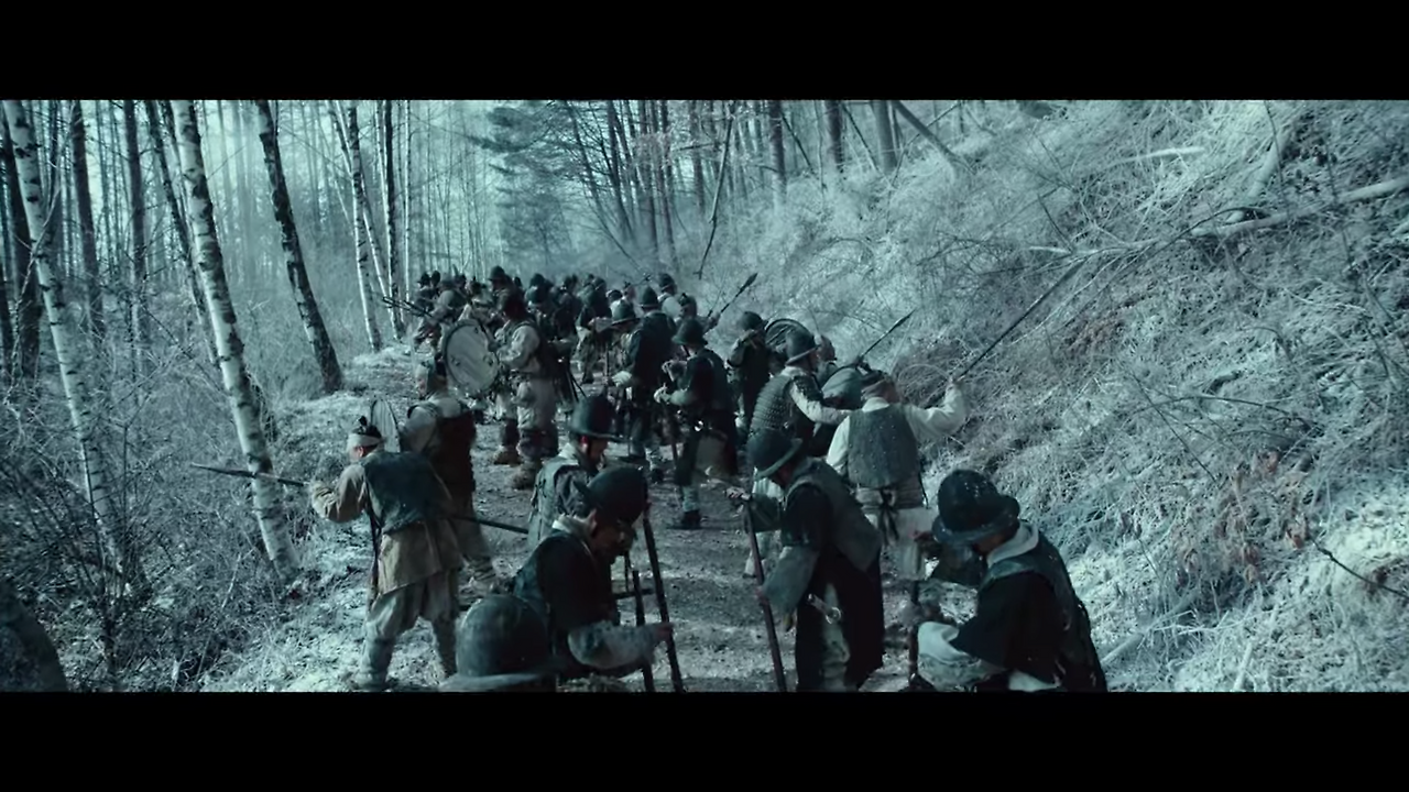 이 문구를 보며, 우리는 이 영화가 겨울을 배경으로 삼았다는 걸 알 수 있다. 그 후 영화는 매우 거칠고 무미건조하고 무거운 질감으로 시작한다. 이미 알려진 대로 영화 남한산성은 인조가 남한산성으로 피신한 후 청나라 황제에게 '삼궤구고두례'를 한 병자호란을 다룬다. 우리는 결론을 이미 알고 있으며 조선은 청나라에게 패했다. 인조를 머리를 바위에 조아리며 청에게 예를 다하기로 맹세한 것을 안다. 이는 인조실록에도 적혀있는 사실이다. 관객들의 기대는 '소설 남한산성을 어떻게 영상으로 옮겼을까?'와 실제로 눈으로 보지 못한 역사재현이다.