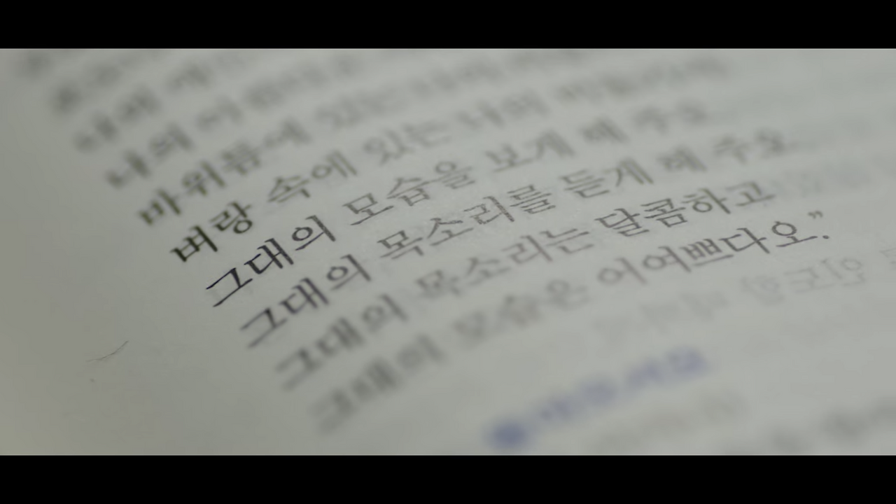 목소리는 드라마가 순간적으로 표현하고 싶은 정서를 강조하기도 한다. tvN 스타트업에서 여진구 배우의 목소리가 대표적이다. 여진구 배우는 스타트업에 전혀 등장하지 않는다. 오직 AI스피커인 ‘영실’의 목소리로만 드라마에 나온다. 음성과 이미지 인식을 결합한 어플인 ‘눈길’을 사용해 원덕(최해숙) 배우가 성경을 읽는 장면을 보자. 이 장면에서 여진구배우의 목소리는 드라마가 추구하는 서정적인 느낌을 최대치로 끌어올린다.
