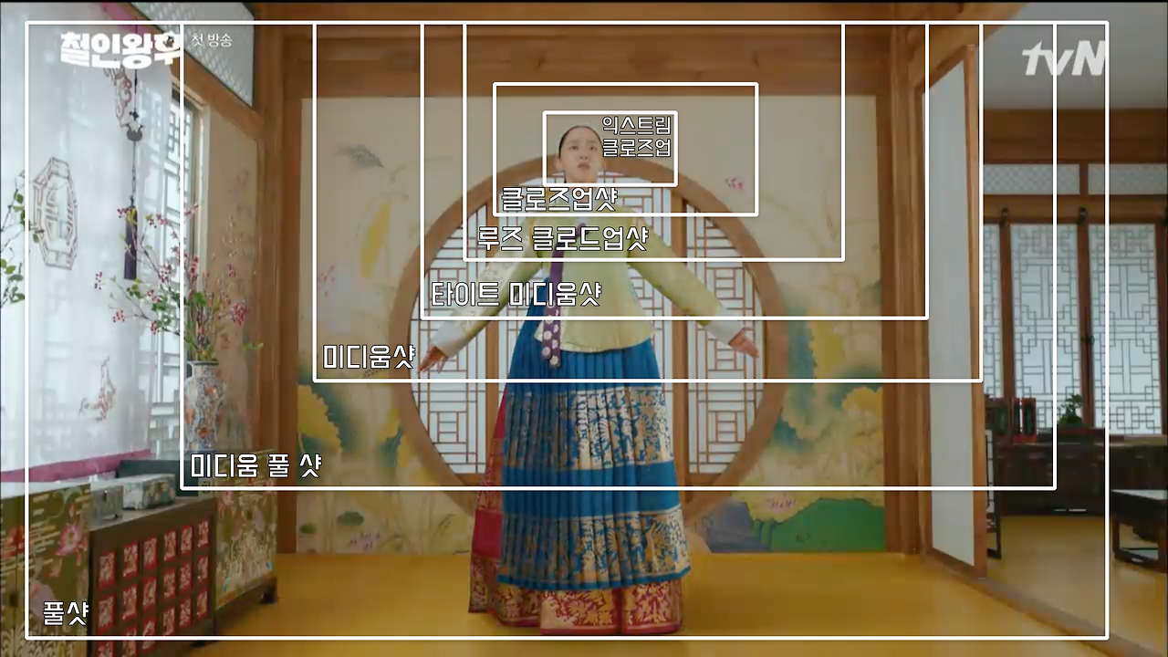 풀샷은 인물의 전신을 찍는 샷이지만 와이드샷을 대체하는 경우에는 '정보'전달하는 성격이 변한다. 예를 들어 백일의 낭군님 같은 경우 나원득(도경수)과 연홍심(남지현)이 보리밭에 있는 장면에서는 익스트림 와이드샷이 이야기 정보를 전한다. 하지만 방안에 함께 있는 경우에는 와이드샷 촬영 자체가 불가능하다. 이 같은 경우 풀샷이 와이드 혹은 익스트림 와이드샷의 역할을 대신한다. 철인왕후도 마찬가지다. 철종(김정현)과 김소용(신혜선&최진혁)의 첫날밤 장면은 실내다. 이런 경우도 백일의 낭군님처럼 와이드샷 촬영이 힘들다. 이경우는 풀샷과 와이드샷의 중간영역에서 촬영해 전체 분위기를 영상에 넣었다.