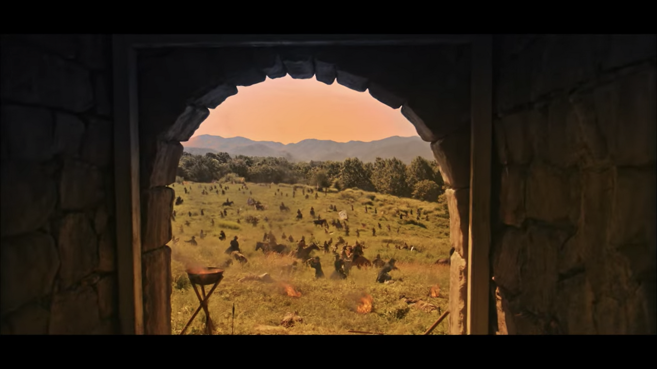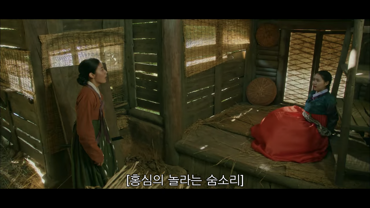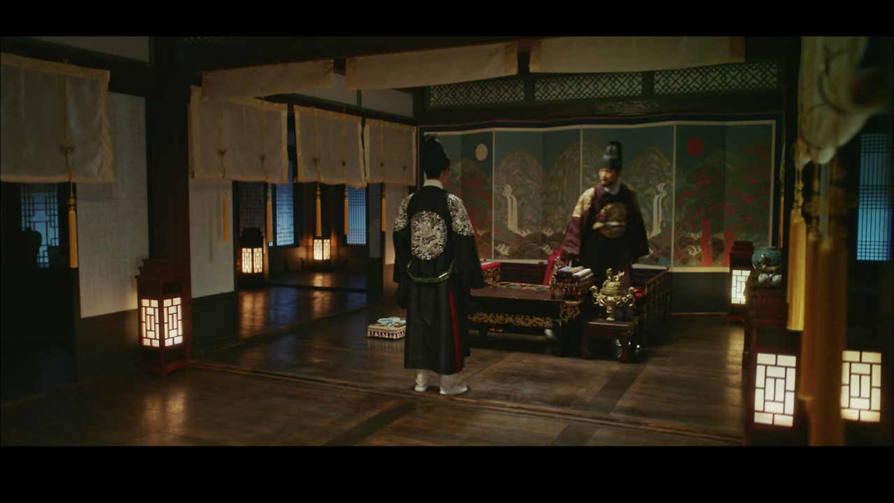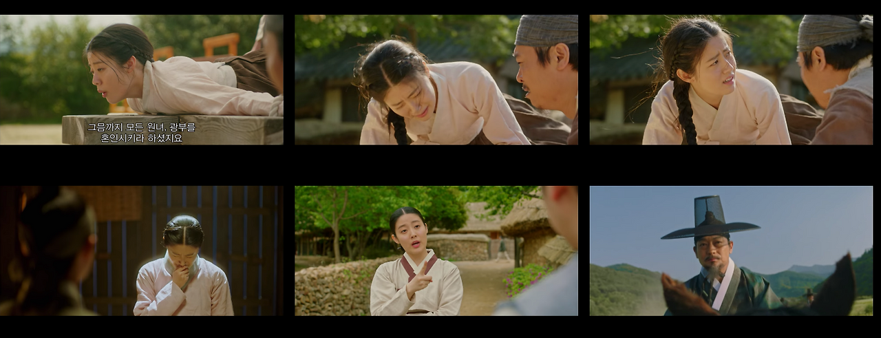 이러한 경우에 풀샷에서 크기를 조금 더 키워 풀샷과 와이드샷의 중간에서 전경을 묘사한다. 물론 궁에서도 종종 와이드샷을 사용한다. 하지만 공간이 가진 한계 때문에 이야기 전개에 필요한 공간보다 피사체가 더 잡혀 공간정보가 산만하다. 이러한 부분은 촬영 문제라기보다는 ‘사극’이라는 제약. 장르 특성 때문에 발생하는 부분이다.