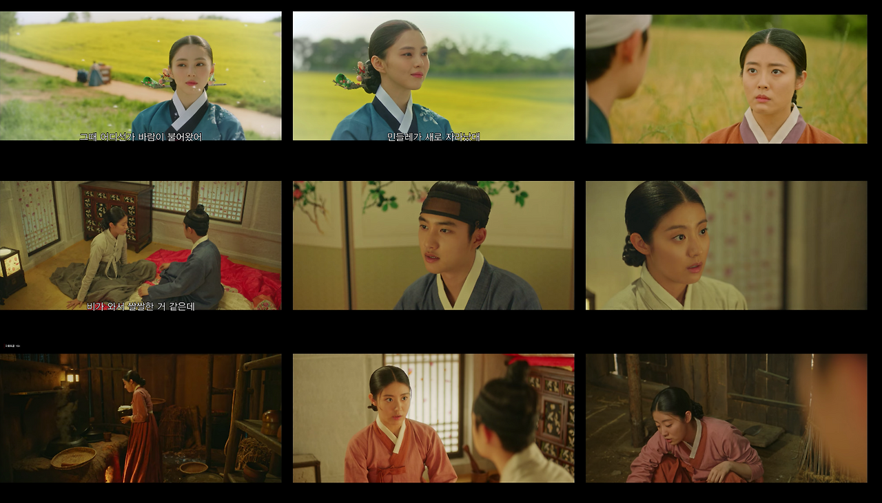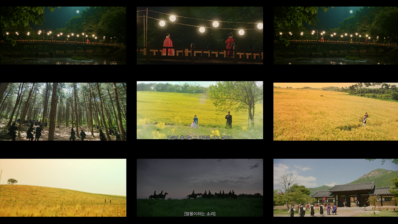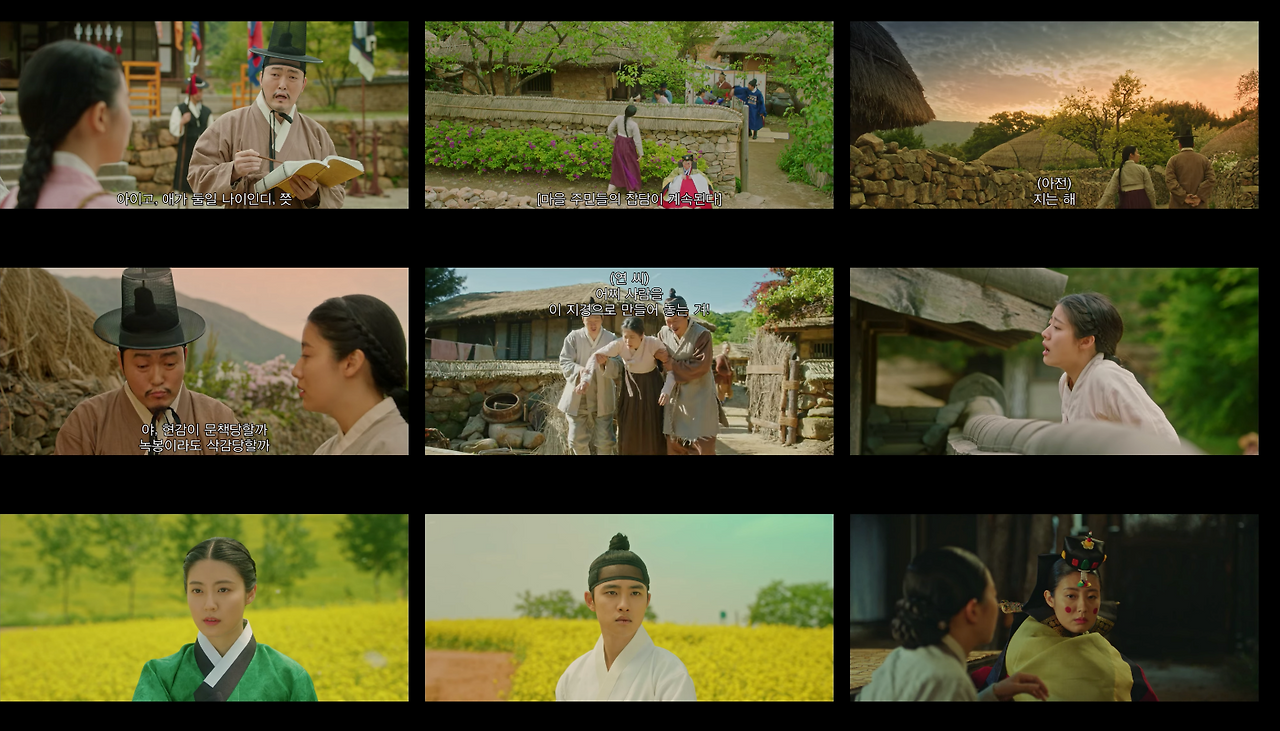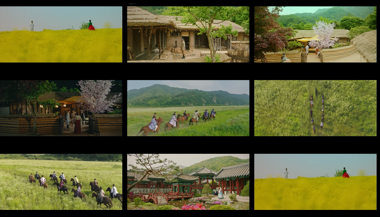 연홍심(남지현)이 오라비인 무연(김재영)과 약속을 지키기 위해 보름날에 가는 다리, 무연과 세자빈이 만나는 민들에 밭 장면에서 노란색 꽃과 민들레꽃을 담은 와이드 및 익스트림 와이드샷은 사극만이 가진 서정적인 미을 극대화 시킨다.