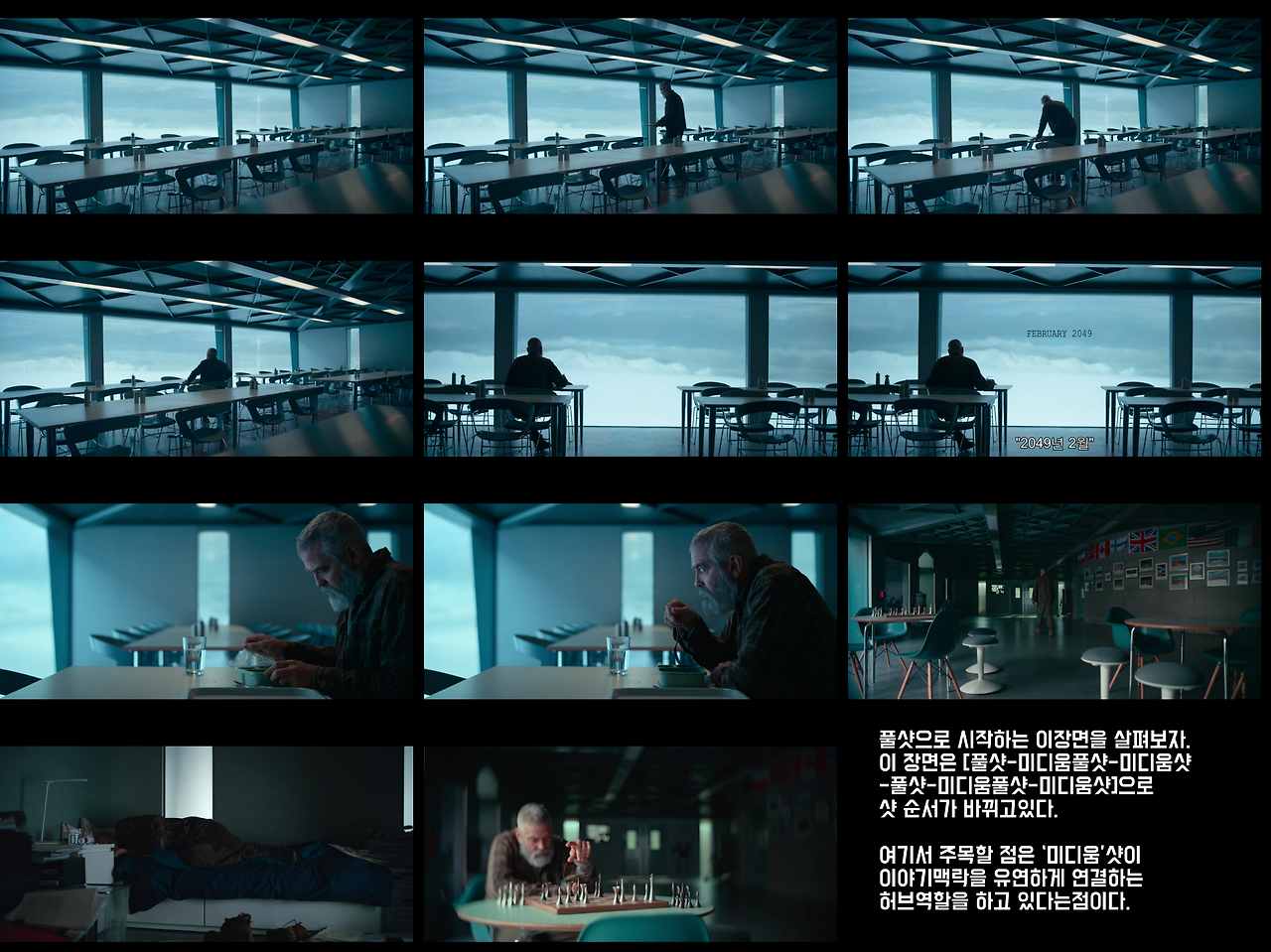 지금까지의 심화학습은 샷 설계과 샷 편집에 중심을 두었다. 물론 오늘 살펴볼 넷플릭스 오리지널 영화인 ‘미드나이트 스카이’도 같은 선상에 있다. 하지만 이번 글에서는 샷 설계와 컷 편집이‘미드나이트 스카이’의 유려하고 절제된 영상미에 어떻게 기여하는지 알아보고자 한다.